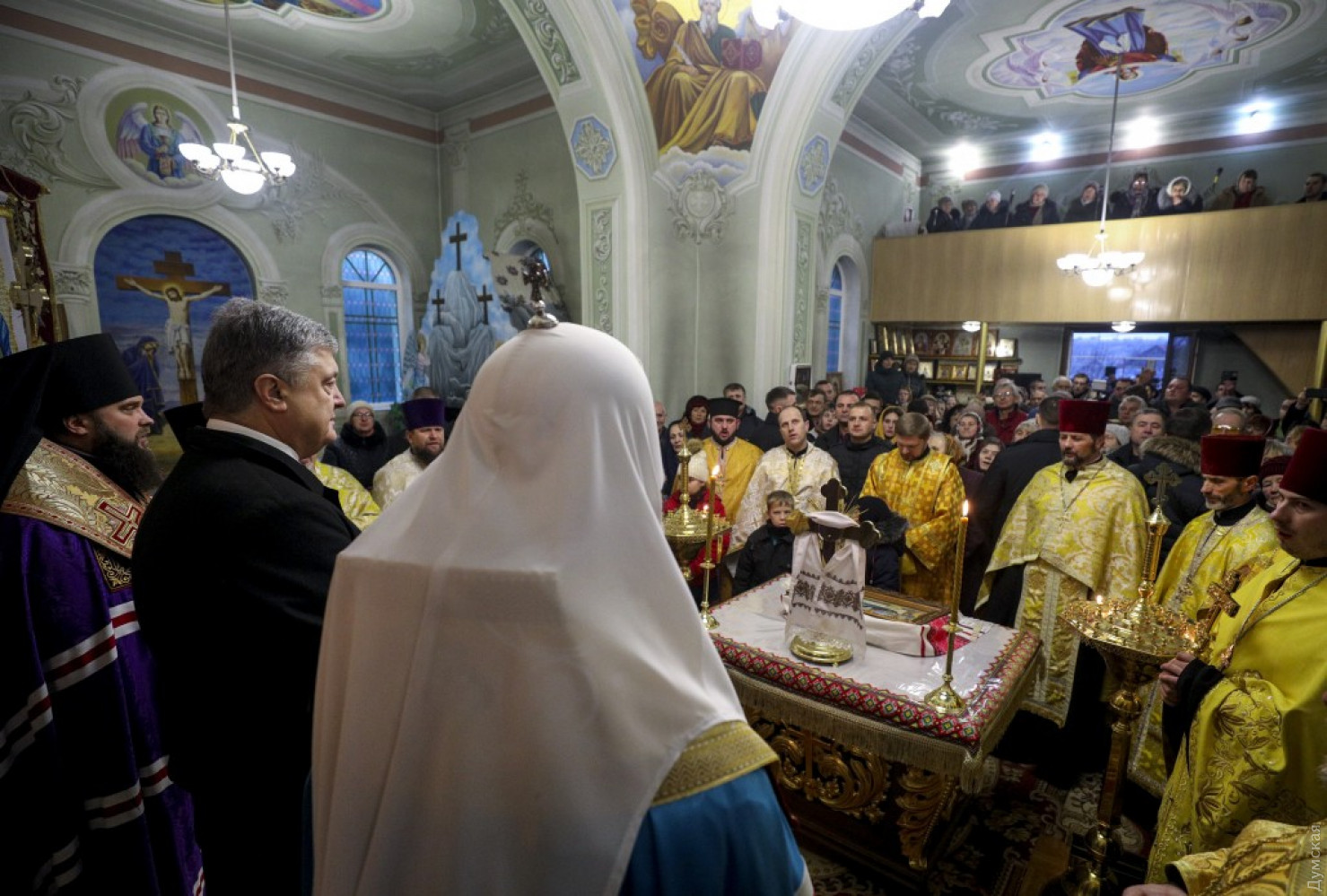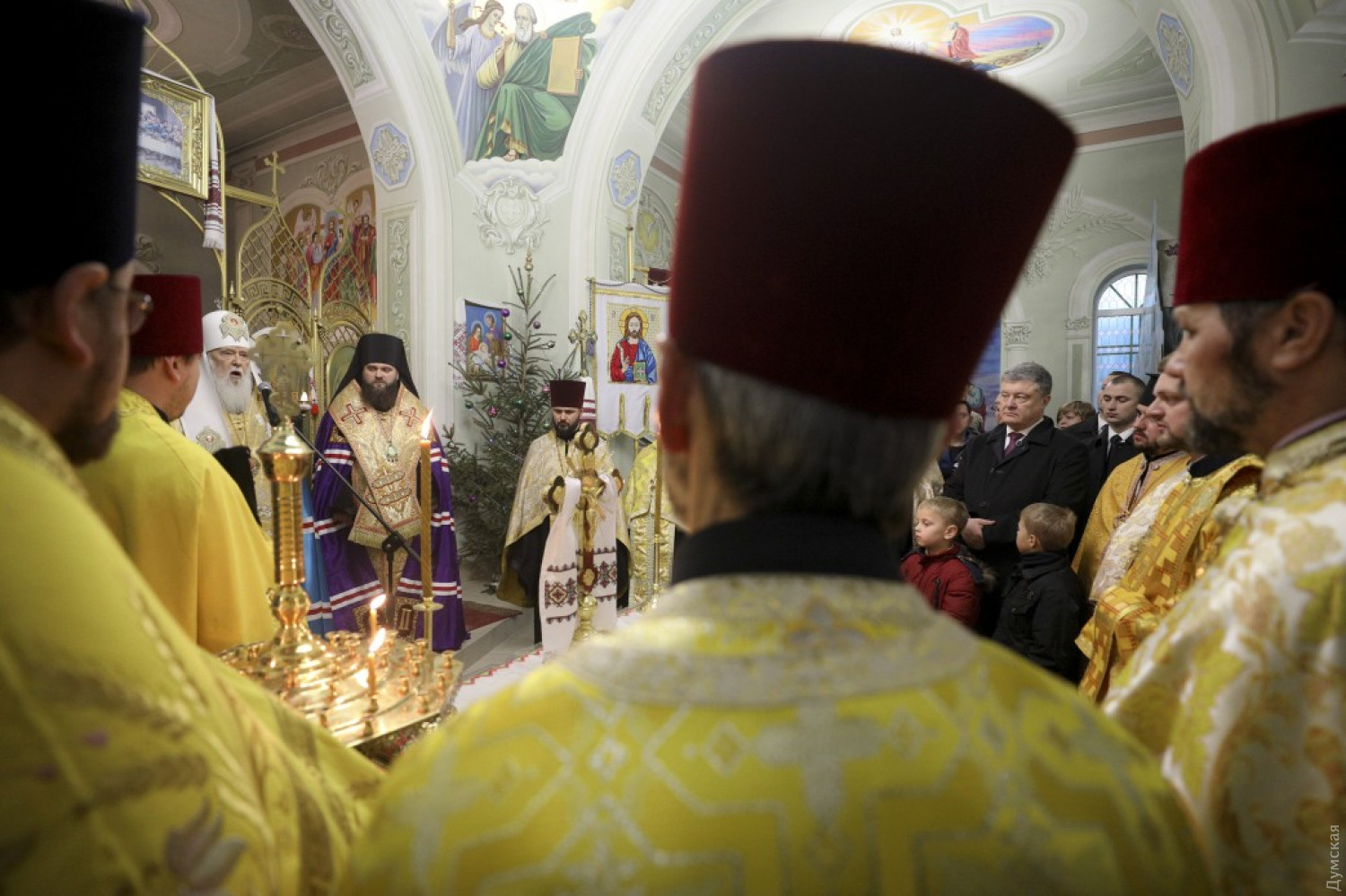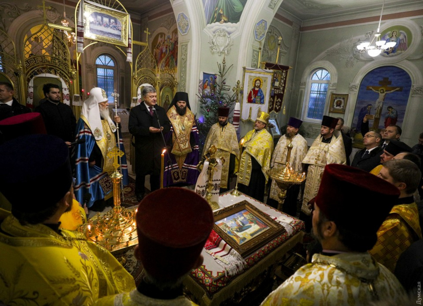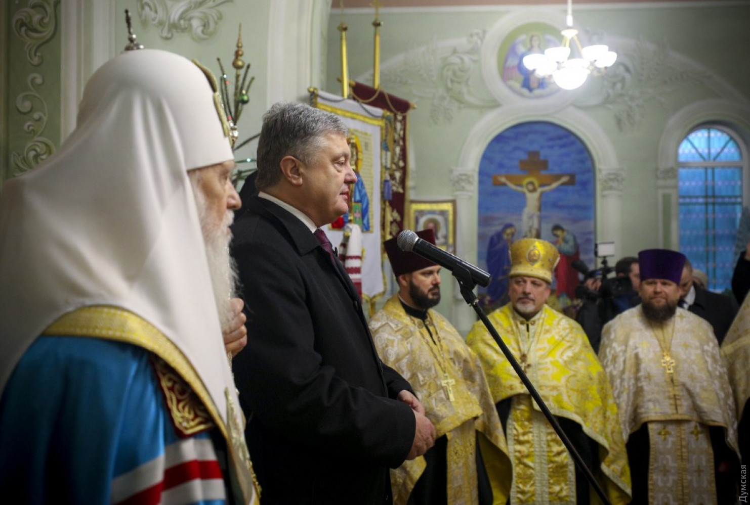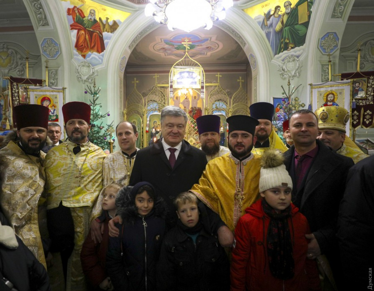 Президент Украины Петр Порошенко принял участие в предрождественском молебне, который прошел сегодня в Свято-Успенском храме села Мирное Беляевского района Одесской области. Глава государства находится в нашем регионе с рабочим визитом. Вместе с ним в богослужении участвовали почетный патриарх Православной церкви Украины Филарет и одесский епископ Павел. «Эти дни мы запомним навсегда. Мы с вами стоим на пороге получения Томоса. Мы стоим на пороге большой радости. Мы стоим не просто на пороге рождественских праздников, а присутствуем при рождении украинской автокефальной церкви», — обратился глава государства к верующим. Он напомнил, что 15 декабря на объединительном соборе в Киеве было принято решение о создании Православной Церкви Украины и был избран ее предстоятель. «Я хочу поблагодарить его святость Филарета. Жертвенность, которую его святейшество демонстрировал все это время Мы просто не имеем таких примеров в истории Украины», — подчеркнул глава государства и добавил, что патриарх поставил вопрос создания церкви гораздо выше, чем личную судьбу. «Без этого церковь не была бы создана, — сказал руководитель страны. — Много раз казалось, что ситуация заходит в тупик. И только мудрость его святейшества и мудрость вселенская позволили нам найти эту дорогу к нашей объединенной церкви», — сказал президент. Он также поблагодарил митрополита Макария, митрополита Симеона (бывший иерарх УПЦ МП, перешедший в Украинскую православную церковь) и всем иерархам, которые «приняли очень мудрое решение». Президент особо подчеркнул, что новая украинская церковь «идет ко всем с любовью и тот, кто принял для себя решение оставаться в церкви, которая сохраняет общение и руководство со стороны России, это его выбор»: «Никто не запрещает вам ходить в церковь и начинать службу Божью с молитвы за Россию, если это ваш выбор», — отметил Петр Порошенко. СМЕРТЬ РОСІЙСЬКИМ ОКУПАНТАМ! Помітили помилку? Виділяйте слова з помилкою та натискайте control-enter