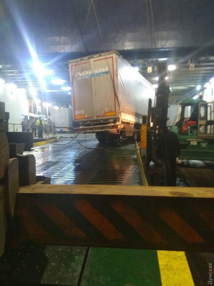 Необычное происшествие случилось на днях в Черноморском порту. Водитель турецкой фуры при выезде с парома «Вильнюс» не справился с управлением, и фура зависла над водой. Как сообщили в пресс-службе порта, сигнал об инциденте при выгрузке парома компании «Укрффери» поступил в главную диспетчерскую в 01:20 5 ноября. «Водитель турецкого автофургона, не дождавшись команды на выезд, начал движение и не справился с управлением. Груженная фура правой стороной съехала с аппарели и на некоторое время зависла над водой», — говорится в сообщении. В ходе операции по спасению порт задействовал семь единиц техники, в том числе причальные и корабельные лебедки, а также вилочный 10-тонный автопогрузчик и 50-тонный кран, который в условиях ночного тумана сопровождали работники службы безопасности дорожного движения. Операция длилась более трех часов. «Пострадавших нет, груз цел и невредим, техника — без повреждений», — заключили в порту. СМЕРТЬ РОСІЙСЬКИМ ОКУПАНТАМ! Помітили помилку? Виділяйте слова з помилкою та натискайте control-enter |