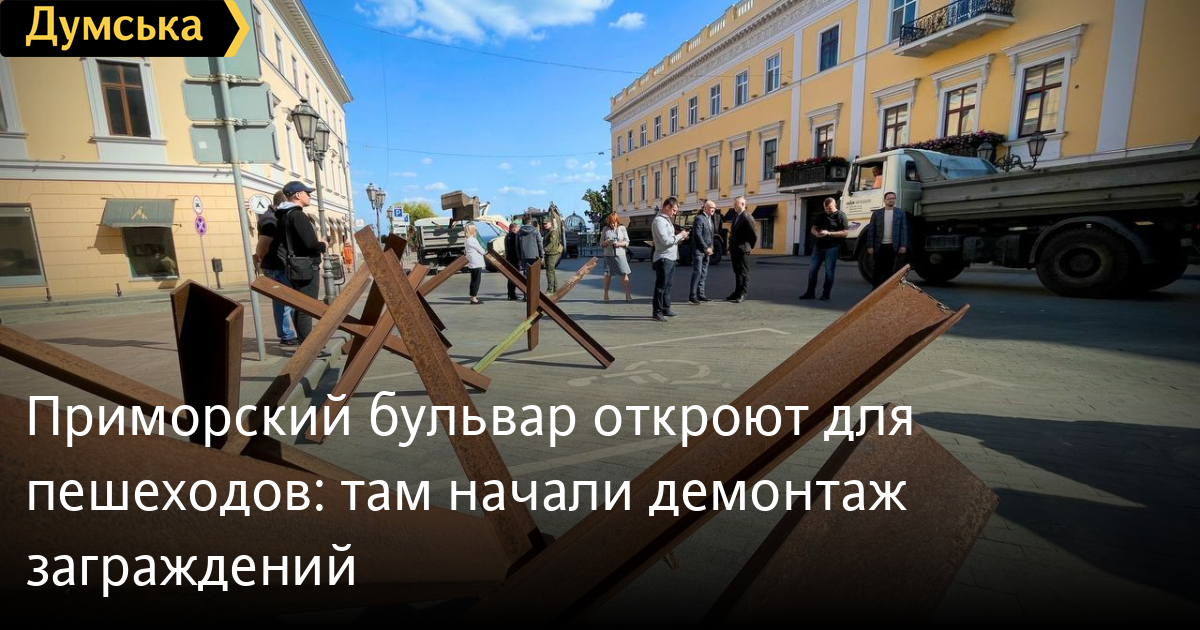 Приморський бульвар відкриють для пішоходів: триває демонтаж загородженьПриморський бульвар відкриють для пішоходів. За словами мера Одеси Геннадія Труханова, рішення узгоджене з військовими. Наразі почалися роботи з демонтажу огороджень. Безперешкодно прогулятися бульваром одесити та гості міста зможуть вже найближчими днями. «Ми робимо все можливе, аби кожен мав змогу насолодитись красою Одеси. Проте, як і раніше, треба дотримуватись усіх правил безпеки та вимог військових. Бережіть себе та своїх близьких людей!» — сказав Геннадій Труханов. СМЕРТЬ РОСІЙСЬКИМ ОКУПАНТАМ! Помітили помилку? Виділяйте слова з помилкою та натискайте control-enter |