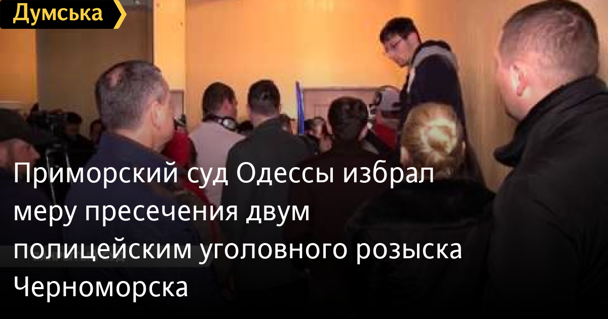 Приморский суд Одессы избрал меру пресечения двум полицейским уголовного розыска ЧерноморскаПриморский суд Одессы избрал меру пресечения двум полицейским уголовного розыска Черноморска. Их подозревают в применении пыток и вымогательстве денежных средств. Поддержать своих подопечных пришел лично руководитель областного управления полиции Гиорги Лоркипанидзе СМЕРТЬ РОССИЙСКИМ ОККУПАНТАМ! Заметили ошибку? Выделяйте слова с ошибкой и нажимайте control-enter Думская ТВ. Сюжеты: