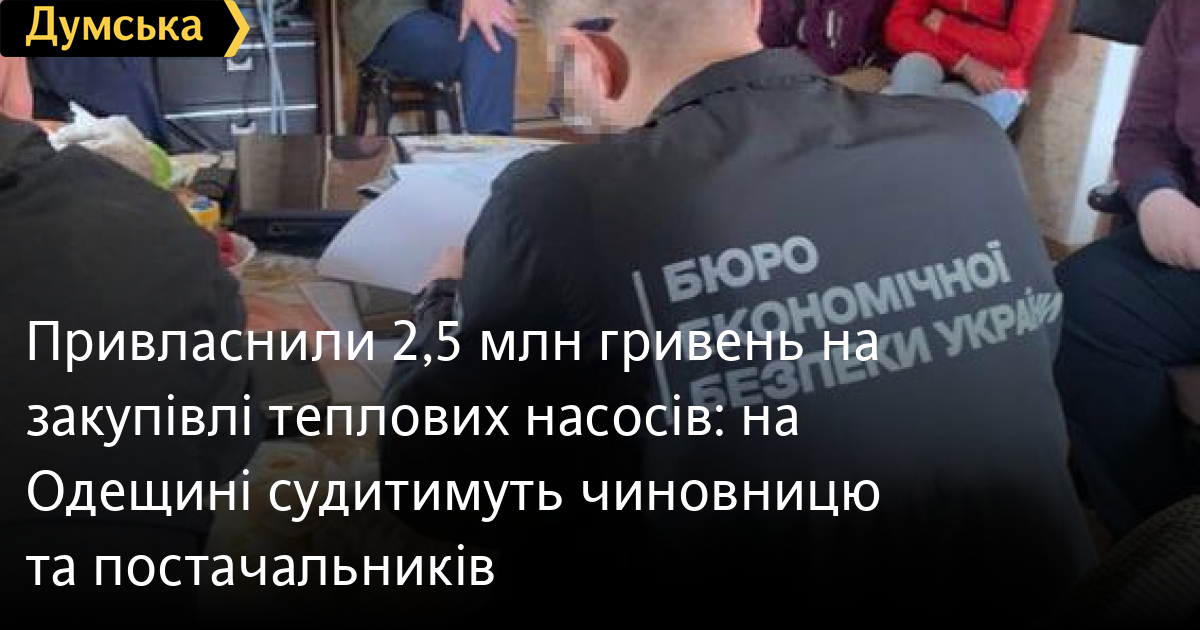 Привласнили 2,5 млн гривень на закупівлі теплових насосів: на Одещині судитимуть чиновницю та постачальниківЧиновницю комунального підприємства «Бугаз» і двох підприємців судитимуть за привласнення 2,5 млн грн на закупівлі теплових насосів. Як повідомили в пресслужбі прокуратури Одеської області, співробітниця, відповідальна за публічні закупівлі, забезпечила підконтрольній фізособі перемогу в тендері на придбання п'яти теплових насосів за 5,4 млн гривень. Ця ціна більш ніж вдвічі перевищила ринкову і в результаті бюджет втратив понад 2,5 млн гривень. Зловмисникам повідомили про підозру у привласненні бюджетних грошей і підробці документів (ч. 5 ст. 191, ч. ч. 3, 4 ст. 358 КК України). Їм загрожує від семи до 12 років позбавлення волі з конфіскацією. Чиновницю відправили під варту, а спільникам призначили заставу у розмірі 450 тис. грн кожному. Помітили помилку? Виділяйте слова з помилкою та натискайте control-enter Новини по цій темі: 30 серпня 2025: Двісті відсотків прибутку на онкохворих: як лікарні Одеської області переплачують десятки тисяч за медичне обладнання 15 квітня 2025: Ямковий ремонт за 50 млн: в Одесі починають латати дороги, заробить і депутат-"слуга» 10 січня 2025: Тендер на організацію харчування в психлікарнях Одещини майже на 100 млн гривень виграла фірма, викрита в махінаціях 25 листопада 2024: Для відновлення зруйнованого окупантами житла: в Одеській області оголосили два найдорожчі тендери за тиждень 22 листопада 2024: В Одесі з 23 листопада перекриють узвіз Маринеско через ремонт |
