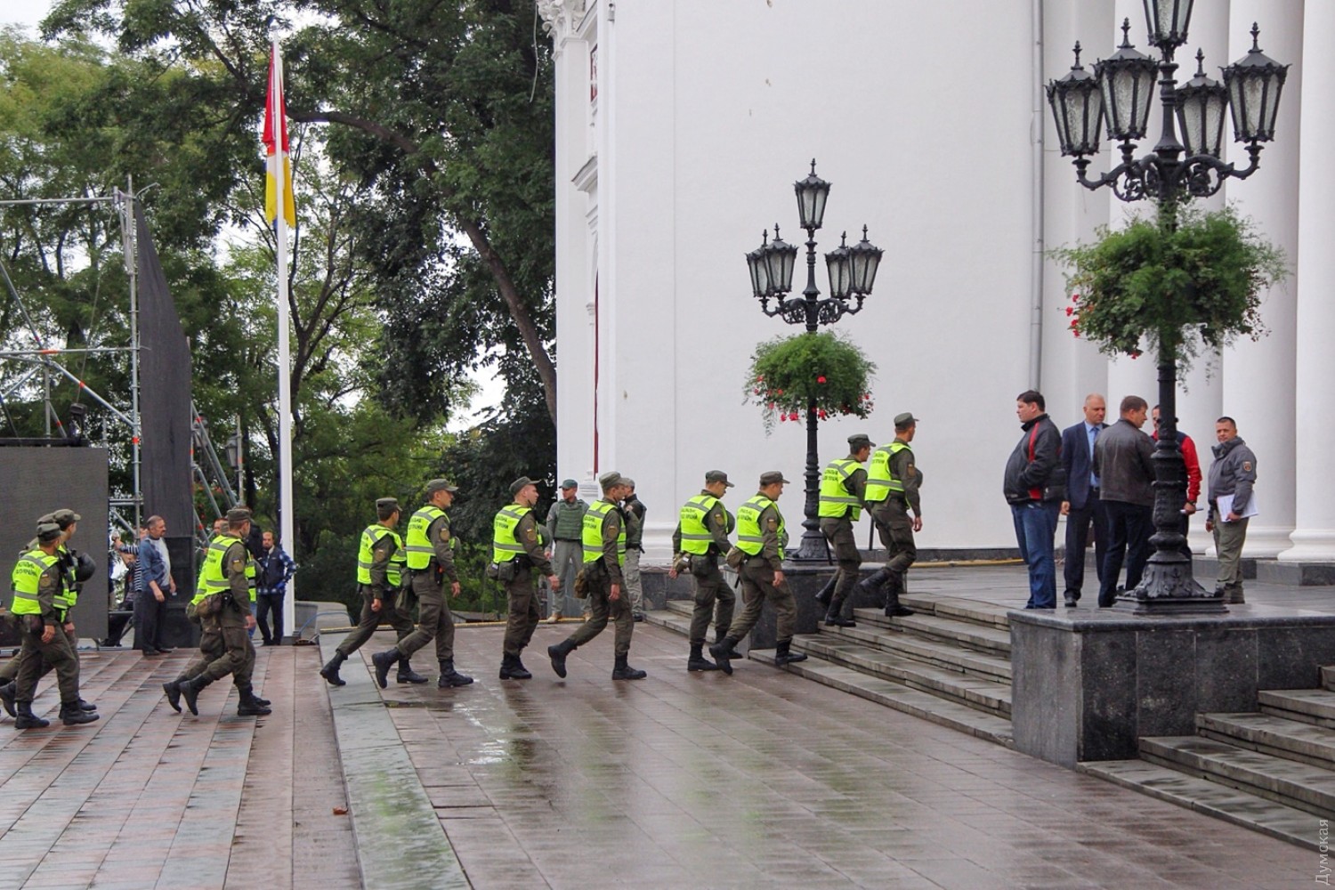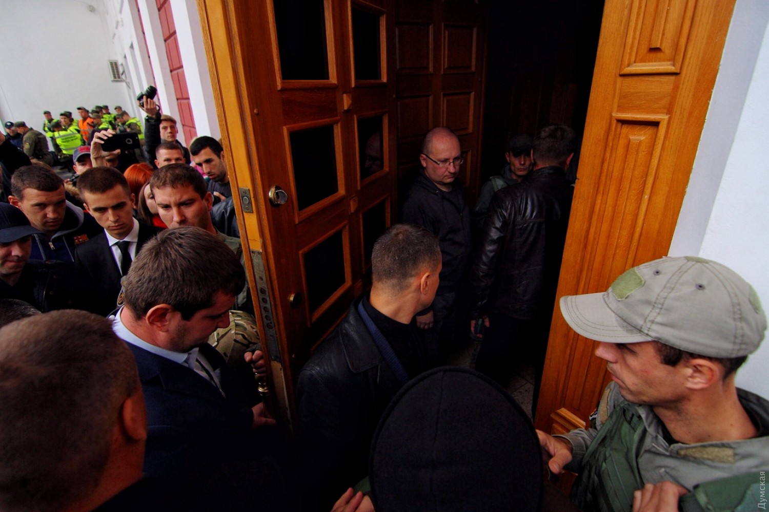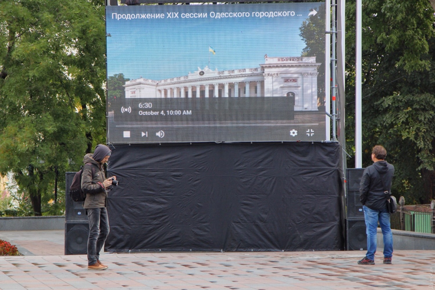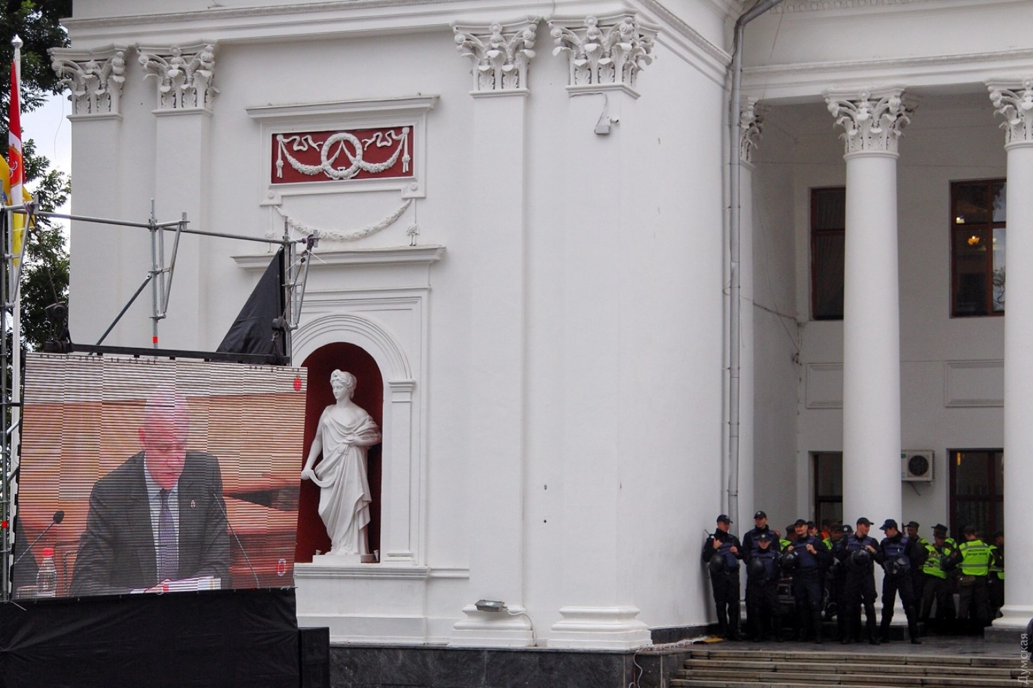 На продолжение сессии попадут не все: возле одесской мэрии монтируют экран, чтобы транслировать заседание (обновлено)На Думской площади возле здания мэрии, где сегодня должно состояться продолжение прерванной сессии, монтируют экран, чтобы вести трансляцию. Как сообщает наш корреспондент, количество активистов и полиции на площади значительно меньше, чем в прошлый раз. При этом очевидно, что в здание не смогут попасть все желающие — еще за полчаса до начала сессии зал был полон людей, которых, по словам очевидцев, свозили сюда автобусами. Напомним, 20 сентября сессия горсовета была прервана из-за массовых беспорядков, связанных с трагедией в лагере «Виктория». В прошлый раз горсовет так и не смог рассмотреть ключевые вопросы повестки дня, в частности о миллиардном кредите в «Укргазбанке», электронном билете и другие. ОБНОВЛЕНО В 10:09. Группа оппозиционеров во главе с лидером одесской «Свободы» Павлом Кириленко пытаются договориться с охраной, чтобы в зал пропустили хотя бы 15 представителей протестующих. ОБНОВЛЕНО В 10:10. Охрана согласилась пустить двоих — самого Кириленко и его зама Константина Васильца. ОБНОВЛЕНО В 10:36. Кириленко вышел, сказал, что мест нет, все занято сторонниками мэра. Оппозиционеры потихоньку начали расходиться. СМЕРТЬ РОСІЙСЬКИМ ОКУПАНТАМ! Помітили помилку? Виділяйте слова з помилкою та натискайте control-enter |