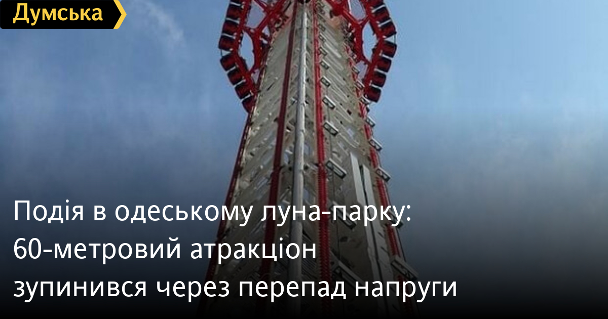 Подія в одеському луна-парку: 60-метровий атракціон зупинився через перепад напругиЗупинка атракціону Power Tower в одеському луна-парку в неділю ввечері була спричинена перепадом напруги. Як повідомили «Думській» в адміністрації луна-парку, відвідувачі, які застрягли в кабіні атракціону на висоті 60 метрів, відбулися переляком. Через короткий час після зупинки кабіну в аварійному режимі спустили вниз. Ніхто з відвідувачів не постраждав. СМЕРТЬ РОСІЙСЬКИМ ОКУПАНТАМ! Помітили помилку? Виділяйте слова з помилкою та натискайте control-enter |