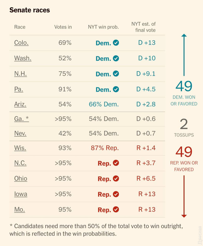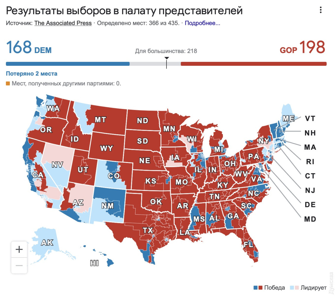 Проміжні вибори в США: у сенаті демократи збережуть мінімальну перевагу, у конгресі республіканці отримають більшістьУ США підраховують голоси виборців на проміжних виборах, що відбулися 8 листопада. Вчора американці обирали 435 конгресменів, а також 35 зі 100 сенаторів. За попередніми даними, у сенаті у демократів і республіканців виходить практично паритет — по 48 мандатів, які, швидше за все, доповняться ще по одному. За такого балансу сил перевага буде на боці демократів, оскільки вирішальним стане голос віце-президента Камали Харріс від демократичної партії. У палаті представників, як і очікувалося, лідирують республіканці. За оцінками The New York Times, у них 193 місця з 435, у демократів — 166. За даними CNN, республіканцям відійдуть 193 місця, їх опонентам — 170. Fox News повідомляє, що у республіканців 195 місць у палаті представників, у демократів — 166. Оцінка NBC: 218 місць у республіканців, 217 - у демократів. Поки підрахунок голосів не завершено, йдеться лише про результати екзит-полів. Народний депутат України Олексій Гончаренко заявив, що оцінює результати виборів у США як «дуже хороші для України» та впевнений у тому, що збережеться двопартійна підтримка нашої країни. «Ті, хто був сильно проти допомоги Україні – здебільшого не потрапили ні до сенату, ні до палати представників. Є кілька людей, які все ж таки змогли виграти, але це незначна кількість і у них не буде підтримки в жодній із палат конгресу. Україна залишається із двопартійною підтримкою у конгресі. Великі друзі України, такі як Марсі Каптур, Браян Фіцпатрік, Майкл Маккол, Гері Палмер, усі переобралися і продовжуватимуть свою роботу у Вашингтоні!» — зазначив Гончаренко. Також у день голосування американці обирали губернаторів 36 штатів із 50. Крім того, вони голосували на місцевих референдумах. У Меріленді, наприклад, виборці вирішили легалізувати канабіс. Там був обраний перший чорношкірий губернатор – демократ Уес Мур. У Массачусетсі обрали першу жінку-губернатора, демократа Мору Хілі, яка також стане першою відкритою представницею ЛГБТ-спільноти на посаді керівника виконавчої влади штату. Помітили помилку? Виділяйте слова з помилкою та натискайте control-enter |