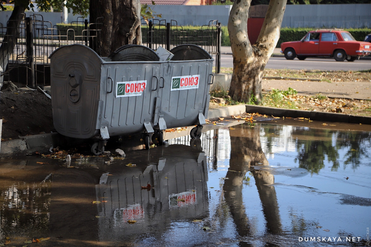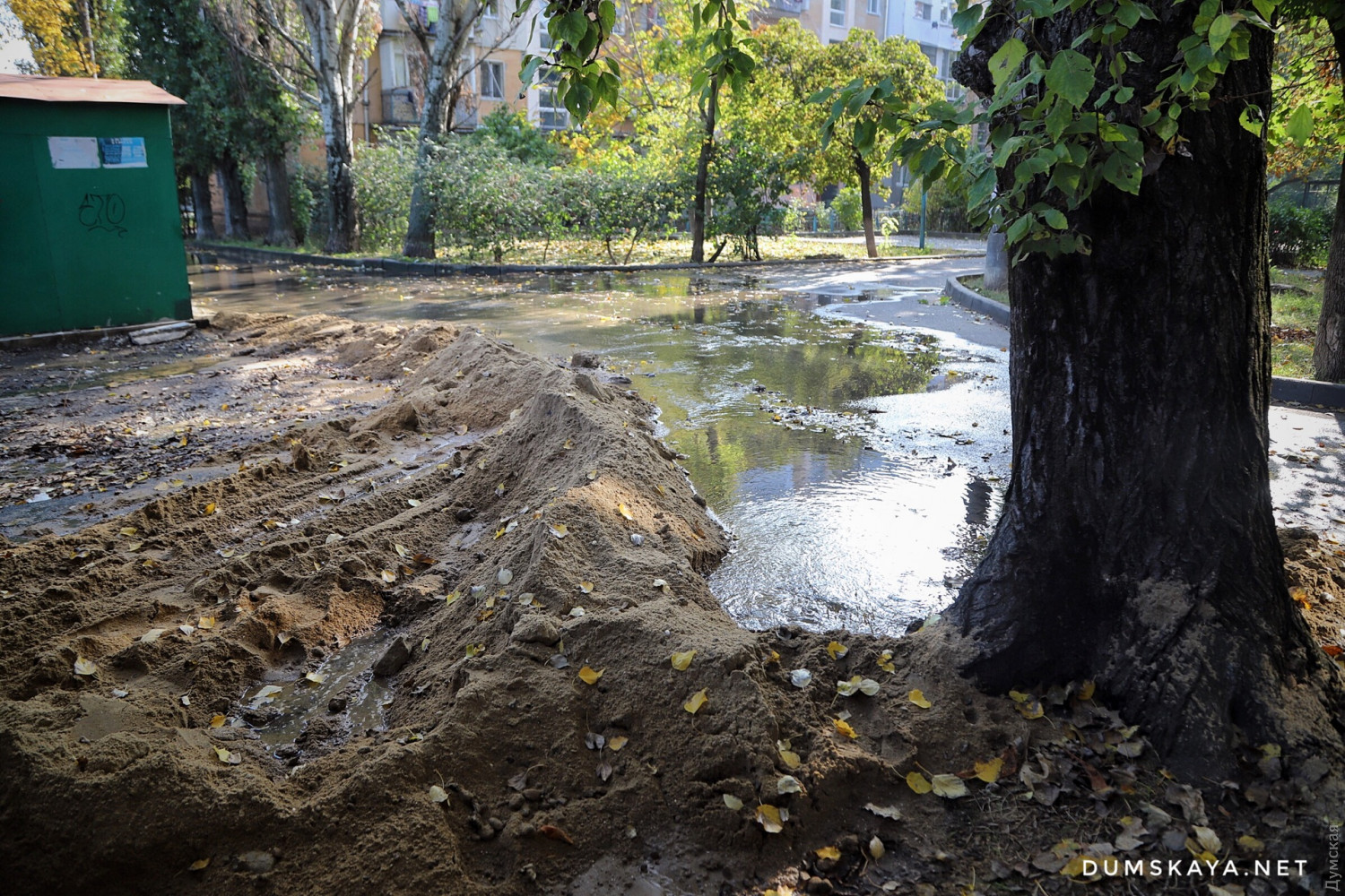 На Комарова прорвало трубу: вода бьет прямо из-под корней дерева и заливает улицуСерьезный прорыв водопровода произошел вчера вечером между жилыми домами №10/1 и 10/2 по улице Космонавта Комарова. Как передает корреспондент «Думской», вода бьет прямо из-под корней огромного тополя. По словам местных жителей, «Инфоксводоканал» пообещал приступить к ремонту только в понедельник. Дело в том, что сперва нужно удалить дерево, а «Горзелентрест» якобы отказался делать это. Рабочие, которые строят на территории близлежащей школы образовательный центр, насыпали возле течи своеобразную дамбу из песка, направив поток в сторону проезжей части на Комарова. СМЕРТЬ РОСІЙСЬКИМ ОКУПАНТАМ! Помітили помилку? Виділяйте слова з помилкою та натискайте control-enter |