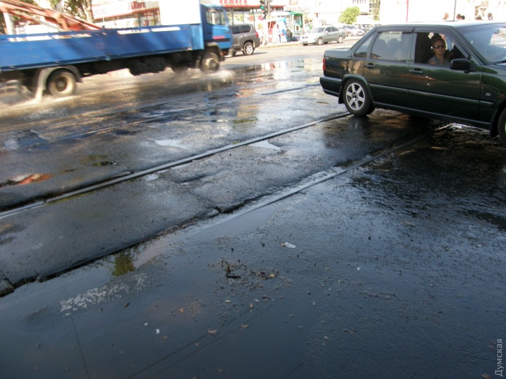Сегодня, 3 сентября, возле дома №57 по Фонтанской дороге случился прорыв водопровода. Как передает корреспондент «Думской», трамвайные пути и дорога частично подтоплены до 7-й станции Фонтана. Движению транспорта, впрочем, это не мешает. Жалуются пешеходы, которым приходится обходить огромные лужи, и предприниматели мини-рынка. «Потоп как минимум с утра. Мы звонили в «Инфокс», там сказали только, что приняли заявку. Вода постоянно прибывает, в магазинах уже намокает пол», — говорили торговцы. На данный момент ремонтная бригада «Инфоксводоканала» уже приехала на место и устраняет течь. СМЕРТЬ РОСІЙСЬКИМ ОКУПАНТАМ! Помітили помилку? Виділяйте слова з помилкою та натискайте control-enter |