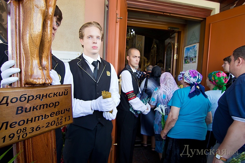Прощание с известным одесситом, основателем и многолетним совладельцем рынка «Седьмой километр» Виктором Добрянским прошло сегодня в храме Святого мученика Виктора в поселке Авангард, что под Одессой Место для отпевания было выбрано неспроста: этот храм, как и вся социальная инфраструктура Авангарда, был возведен на средства покойного. Попрощаться с создателем «Седьмого» пришло под тысячу человек. Экс-мэр Одессы Руслан Боделан вспоминает о Добрянском как о добром и хорошем человеке: «Есть люди-разрушители, а есть созидатели. Он был созидателем: создавал материальные ценности, создавал рабочие места. А как он поселок Авангард изменил, как навел тут порядок? Он был очень добрый душевный человек», — сказал Боделан. Экс-мэр добавил, что после смерти Добрянского возможна война за его наследство: «У нас это не ново. Тяжело создавать, очень легко забирать. Забирать силой, еще какими-то методами. Думается, что рано или поздно это закончится в нашей стране», — добавил бывший городской голова. На панихиде также присутствовали вице-мэры Одессы Светлана Бедрега и Мария Стоцкая, глава Овидиопольской райгосадминистрации Александр Орлов, вице-губернатор Дмитрий Волошенков, депутат горсовета Игорь Димитриев, бизнес-партнеры Добрянского Иван Аврамов и Борис Мельничук. Службу вел митрополит Агафангел, который сказал много хорошего о покойном. Организаторы позаботились о самочувствии людей, пришедших попрощаться с Добрянским в тридцатиградусную жару: для них поставили столики с водой. Из церкви была налажена прямая трансляция панихиды на экран, установленный на улице. А пока наверху прощались с Добрянским, в нижнем храме жители Авангарда отмечали православный праздник Маковея. Фото: Александр Гиманов СМЕРТЬ РОСІЙСЬКИМ ОКУПАНТАМ! Помітили помилку? Виділяйте слова з помилкою та натискайте control-enter |