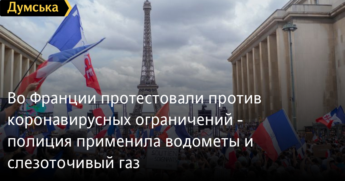 Во Франции протестовали против коронавирусных ограничений — полиция применила водометы и слезоточивый газАкции протеста против коронавирусных ограничений прокатились вчера по всей Франции. По данным СМИ, в демонстрациях приняли участие более 160 тысяч человек, а главными точками напряженности стали большие города Марсель, Монпелье, Нант, Тулуза, а также столица республики — Париж. Между протестующими и полицией вспыхивали столкновения, правоохранители вынуждены были применять слезоточивый газ и водометы. Отметим, гнев французов вызвал законопроект, рассматриваемый Сенатом Франции, который предусматривает создание спецпропусков для посещения ресторанов, кафе, баров, тренажерных залов, домов престарелых и даже поездок на международном транспорте, а также обязательную вакцинацию медработников.