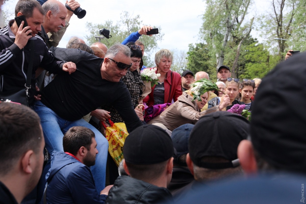 Не обошлось без провокаций в День Победы. Бывший лидер одесской ячейки «Правого сектора» Сергей Стерненко принес на Аллею Славы портрет украинского героя-националиста Романа Шухевича.