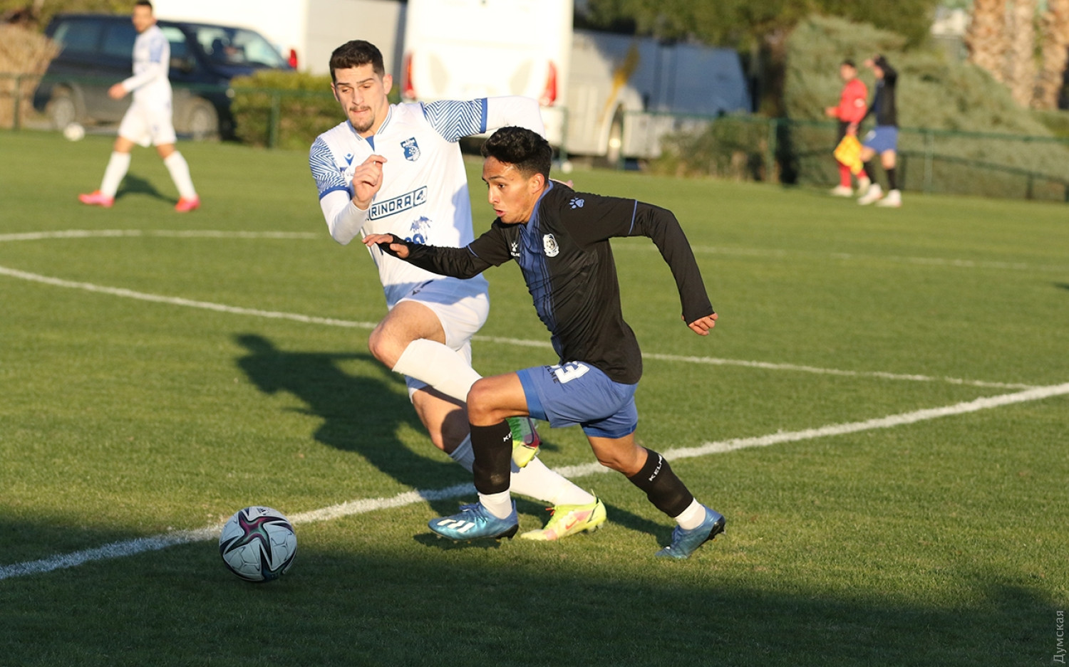Проявили характер — ушли от поражения: «Черноморец» продлил беспроигрышную серию на сборахПерерыв между третьим и четвертым матчем одесской команды в турецком Белеке был меньше суток, а потом Роман Григорчук на встречу со второй командой чемпионата Косова «Дритой» серьезно обновил стартовый состав. Ворота защищал Варакута, в защите слева направо расположились Бобко, Кадири, Дубко и Путря, опорным полузащитником был Михайленко, чуть выше — Вачиберадзе и Эрнандес, тройку атаки составили Штогрин, Цитаишвили и Петков. Было видно, что в таком сочетании футболисты играли впервые. А потому неудивительно, что эта половина матча прошла при небольшом преимуществе «Дриты». Более того, на 30-й минуте соперник, воспользовавшись несогласованными действиями Дубко и Кадири, открыл счет. После перерыва болельщики увидели совсем другой «Черноморец». Сыграли свою роль и замены Романа Григорчука — на поле появились Кравченко, Ванат и Ларин. Активнее начал работать Гио Цитаишвили. Сначала, после его навеса, Иван Бобко пробил в перекладину, а затем уже сам Георгий фирменным крученым ударом поразил дальнюю штангу. В конце концов, «Черноморец» был вознагражден за решительный и атакующий стиль игры. Вачиберадзе не по правилам атаковали в штрафной, а Владислав Ванат реализовал пенальти. 1:1 — эксперименты тренерского штаба продолжаются, равно как и беспроигрышная серия одесского клуба. Автор — Виталий Хемий, спортивный обозреватель «Думской» СМЕРТЬ РОСІЙСЬКИМ ОКУПАНТАМ! Помітили помилку? Виділяйте слова з помилкою та натискайте control-enter Новини по цій темі: 21 червня 2024: Євро-24: збірна України здобула першу перемогу на турнірі, здолавши збірну Словаччини 17 червня 2024: Єврошок: збірна України з футболу стартувала з нищівної поразки на Чемпіонаті Європи 16 червня 2024: Гравець одеського "Чорноморця" у складі олімпійскої збірної України з футболу отримав золото престижного турніру |
