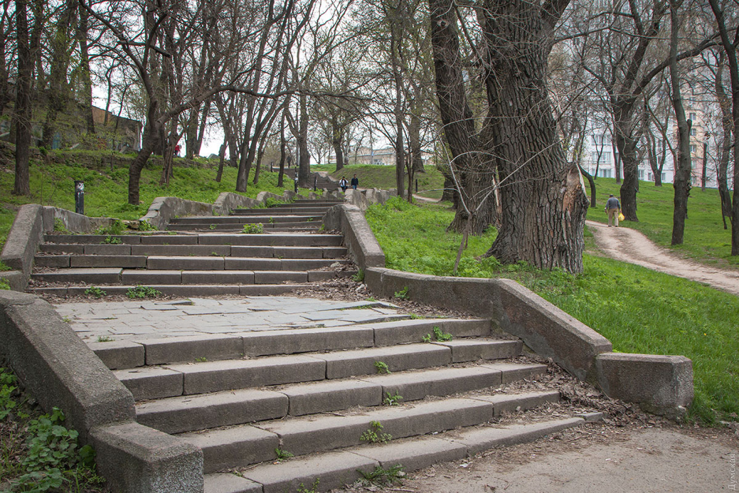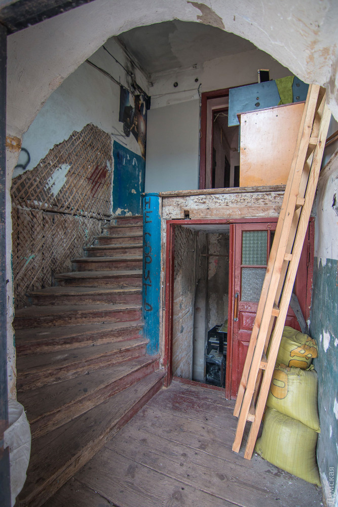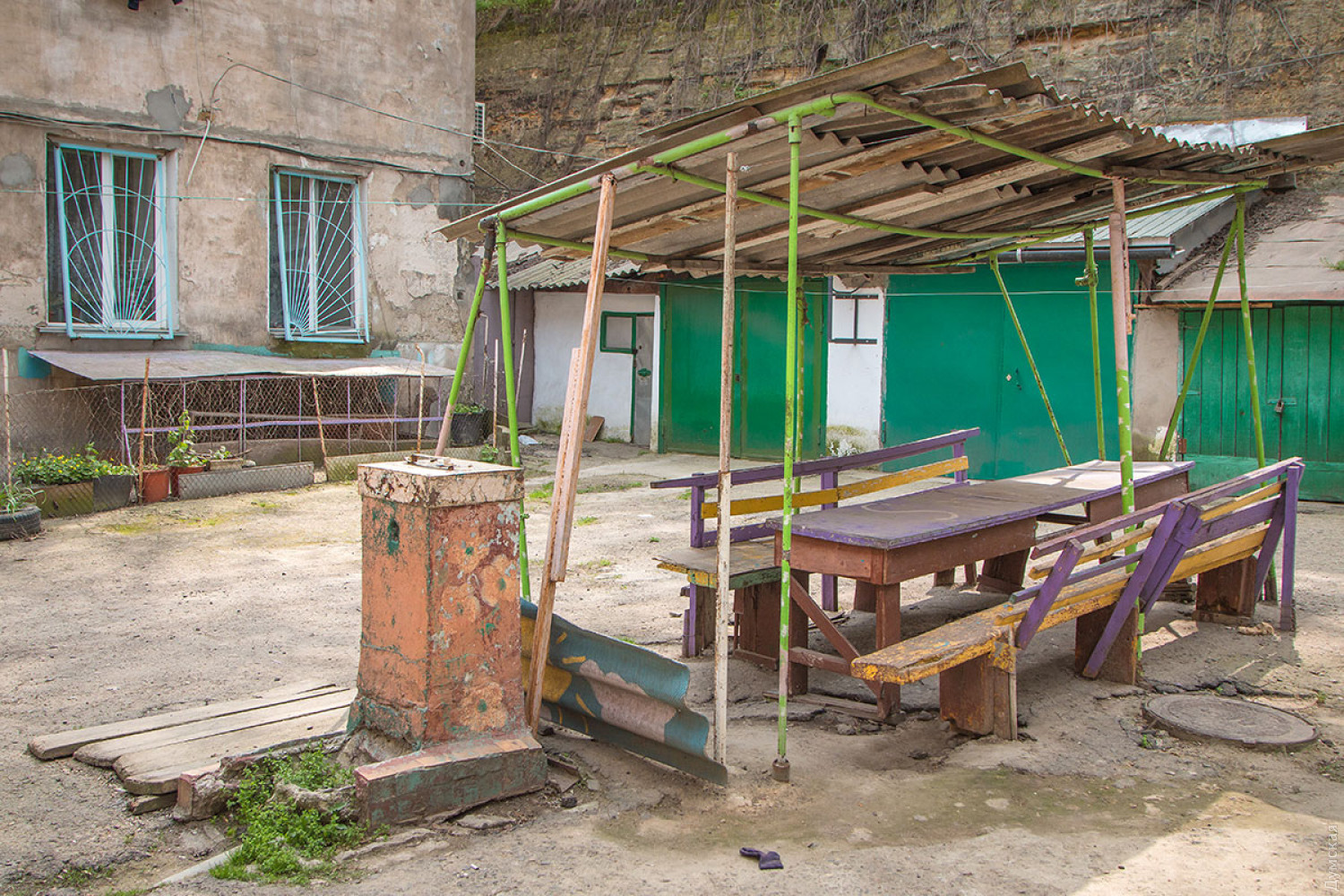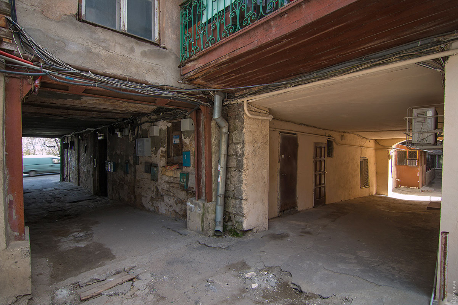 И снова наш «Пульс Города». Корреспондент «Думской» побывал в старинных двориках на спуске Маринеско. Местные именуют этот райончик Полгорой, так как расположен он примерно посередине пути к вершине плато, на котором находится центр Одессы. Краевед Олег Губарь рассказывает, что по генплану 1803 года к Пересыпи должны были вести две магистральные улицы – Херсонская (ныне Пастера) и Елисаветинская. Однако, как часто бывает в нашем городе, планам помешала частная застройка. Только в 1821 году к Пересыпи был практически прорублен по склону горы спуск, получивший имя двоюродного брата Воронцова, генерала Льва Нарышкина. Кстати, это в его дворце сейчас находится Одесский художественный музей. В советское время спуск именовался в честь Короленко, а сейчас носит имя подводника Маринеско. В третьей четверти ХIХ века этот район начали застраивать доходными домами, квартиры в которых сдавались внаем. По обе стороны спуска есть типичные для «горной» Одессы дома с выходами на разных уровнях. К примеру, во двор дома на Приморской, 57 можно попасть со спуска, зайдя в парадную и спустившись на два этажа вниз. Как писала «Думская», городские власти ограждают забором опасный котлован на месте рухнувшего в 1990-е годы дома. Его сосед тоже дышит на ладан. Еще более колоритные дома пристроены вплотную к подпорной стене по четной стороне спуска. Верхние этажи здесь идут вровень с Валиховским переулком, а нижние примыкают к склону. И одному Богу известно, сколько погребов с выходом в катакомбы есть у их жильцов. Во дворе одного такого дома по Валиховскому переулку встречаем Николая. Бывшему сотруднику СРЗ №1, корпуса которого сейчас активно сносятся через дорогу, уже 93 года. Пенсионер заслуженно греется в лучах заходящего солнышка и вспоминает боевую молодость. Николай служил в кавалерии, в составе конно-механизированной группы дошел до Германии. А после ее капитуляции эшелоном был отправлен во Владивосток на борьбу с Японией. Но не успел. Пока эшелон пробивал себе путь по Транссибирской магистрали, американцы успели скинуть на Хиросиму и Нагасаки атомные бомбы, а Красная армия — провести молниеносную операцию в Маньчжурии, и война закончилась. Уже из Смоленска молодого парня «завербовали» на только что построенный в Одессе судоремонтный завод. Здесь Николай встретил свою любовь и остался в городе у самого синего Черного моря навсегда. «Видишь эти остатки стены? — спрашивает Николай, указывая на разукрашенные кирпичи высотой в полметра. – Здесь раньше небольшая пристройка была, наркоманы свое зелье варили, а мы в один день собрались и снесли ее. Потом жильцы поставили тут детскую площадку». В доме очень примечательная лестничная клетка, спиралью поднимающаяся с уровня Маринеско до Валиховского переулка вокруг столба света, бьющего из стеклянного фонаря на крыше. На последнем этаже кто-то устроил настоящую картинную галерею. Все дома на спуске очень колоритные, но нуждаются в ремонте. Не помогает даже соседство с КП «Сервисный центр». Во дворе 14-го номера на Маринеско сушит форму целая спортивная команда. Однотипные шорты и футболки, словно гирлянды, пересекают двор. По словам местных, здесь живет тренер юных дарований из области. Мужчина сам стирает форму своих подопечных. Конечно же, здесь всем заправляют коты — усатые тут греются и на клумбах, и 