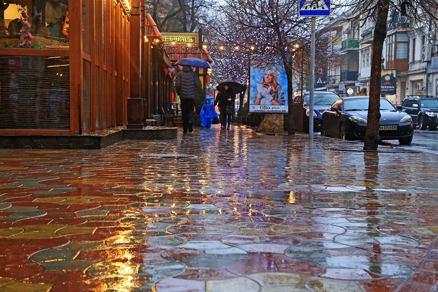 В Одессе весь день шел дождь. Сырая, промозглая погода заставила горожан сидеть по домам. Даже всегда людная Дерибасовская к вечеру совсем опустела. На улицах текут ручьи, но заторов и потопов нет даже на Приморской. Мокрый асфальт играет цветными огнями автомобилей, а Петя и Гаврик озираются, как бы спрашивая, куда это все пропали. Только Вера Холодная в хорошем настроении — ей, как всегда, подарили цветы. Фото Сергея Смоленцева СМЕРТЬ РОСІЙСЬКИМ ОКУПАНТАМ! Помітили помилку? Виділяйте слова з помилкою та натискайте control-enter |