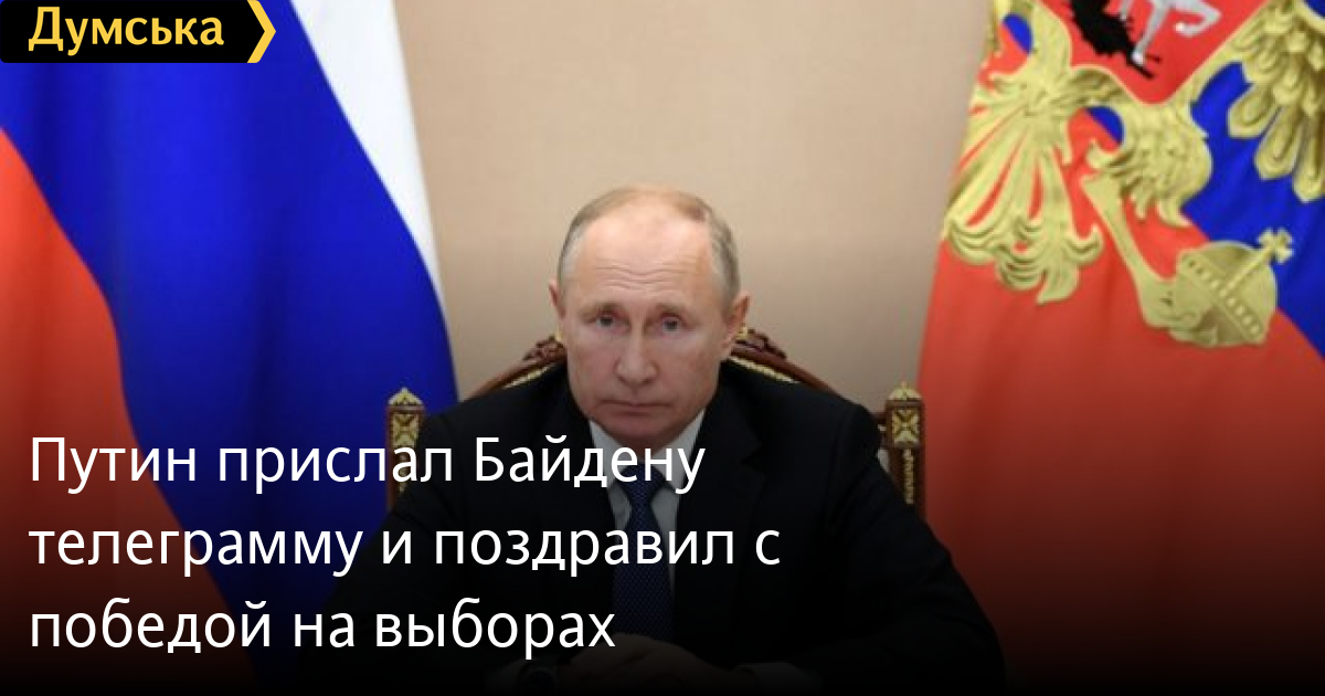 Президент России Владимир Путин только сейчас поздравил избранного президента США Джо Байдена с победой на выборах. До этого в Кремле не спешили с поздравлениями — говорили, что нужно дождаться официального объявления итогов. Путин направил Байдену поздравительную телеграмму, в которой пожелал президенту США всяческих успехов. «Со своей стороны готов к взаимодействию и контактам с Вами», – цитируют Путина в Кремле. Напомним, коллегия выборщиков США подтвердила победу Байдена на выборах — он получил 306 голосов выборщиков из необходимых 270. Результаты выборов президента Конгресс США должен утвердить 6 января. СМЕРТЬ РОССИЙСКИМ ОККУПАНТАМ! Заметили ошибку? Выделяйте слова с ошибкой и нажимайте control-enter |