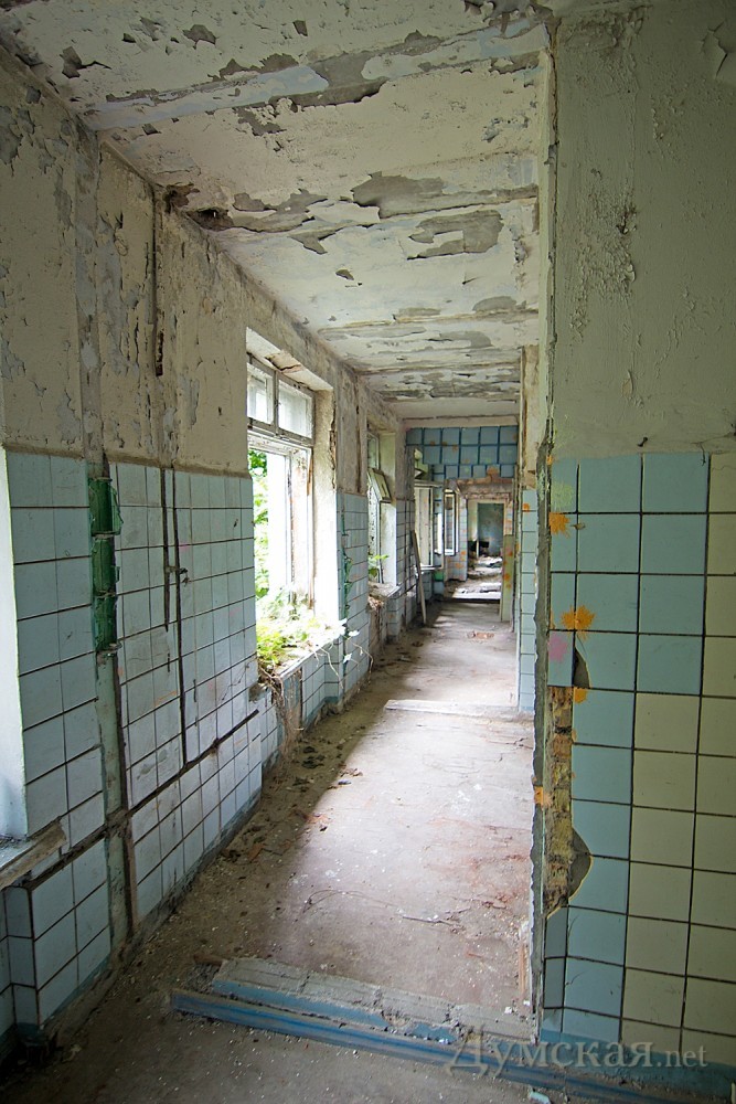 В этом помещении был пожар вследствие атаки. Спасатели до сих пор проливают.