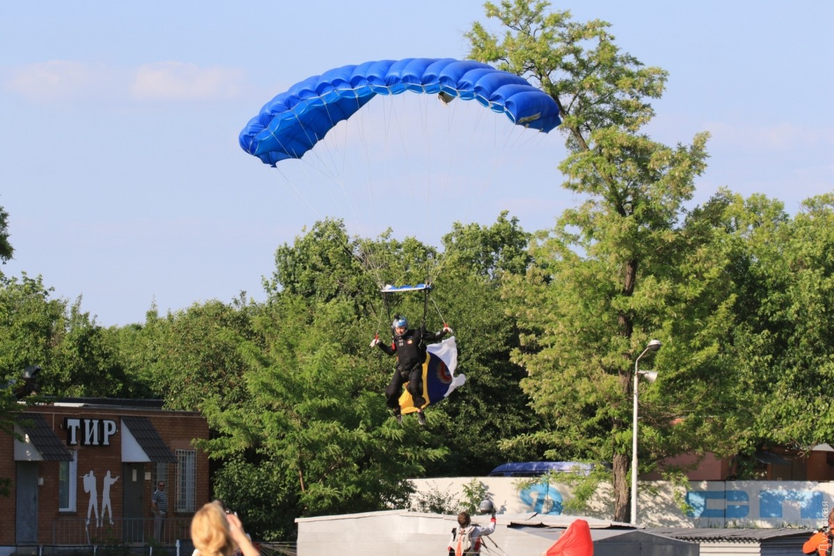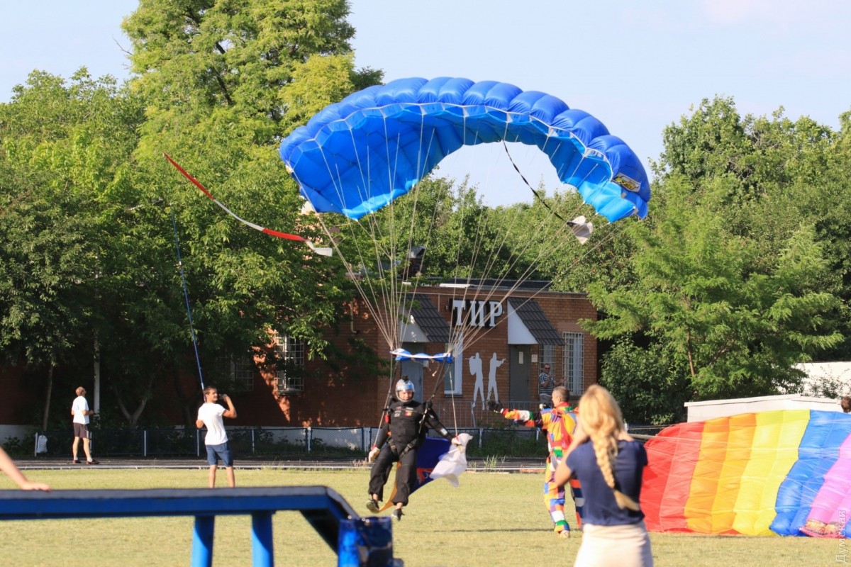 Пятерка одесских парашютистов совершила сложное приземление на стадион «Динамо»Сегодня на стадионе «Динамо» проходило открытие чемпионата одноименного спортивного общества среди молодежи 2004 года рождения. Кульминацией праздника стали сложнейшие прыжки парашютистов одесского аэроклуба с флагами Украины, Одессы и клуба «Динамо». Сложность заключалась в том, что воздушные потоки на границе моря и суши имеют вихревую структуру. К тому же, порывистый ветер, встречаясь с высотками, расположенными по периметру стадиона, меняет направление с образованием завихрений. Современные парашюты обычно бессильны в борьбе с таким ветром, поэтому в бой пошли настоящие асы, имеющие по 4-5 тысяч прыжков. Ан-2 появился над стадионом на высоте 1200 метров в строго назначенное время. От него отделилось пять точек. Первым приземлился известный пилот Константин Оборин, который показал, как надо бороться с ветром. Последним летел парашютист с огромным украинским стягом. Его немного снесло ветром, и он чуть не вписался в размеры футбольного поля. Но к счастью, все обошлось. Через несколько минут промахнувшийся мимо цели парашютист получил аплодисменты зрителей и горячий поцелуй от возлюбленной. Фото Сергея Смоленцева СМЕРТЬ РОСІЙСЬКИМ ОКУПАНТАМ! Помітили помилку? Виділяйте слова з помилкою та натискайте control-enter |