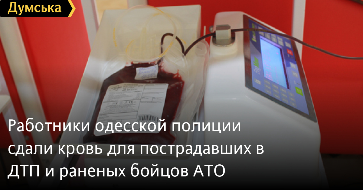 Работники одесской полиции сдали кровь для пострадавших в ДТП и раненых бойцов АТОС 12 августа по 12 сентября в Украине проходит месячник безопасности дорожного движения, в рамках которого работники одесской полиции сдали кровь, чтобы помочь людям, пострадавшим в результате дорожно-транспортных происшествий. Об этом сообщила пресс-служба ГУНП в Одесской области. «Каждый день на наших глазах травмируются и гибнут люди, и если есть хотя бы малейшая возможность спасти их жизни, мы готовы приложить все усилия для этого», — рассказал заместитель начальника ГУНП в Одесской области Сергей Махотин. Также, работники полиции сдали кровь для бойцов, пострадавших в зоне проведения АТО и сейчас находятся в Одессе в 411-м Центральном военном госпитале. СМЕРТЬ РОСІЙСЬКИМ ОКУПАНТАМ! Помітили помилку? Виділяйте слова з помилкою та натискайте control-enter Новини по цій темі: 29 липня 2025: В Усатово Одеської області сталася перестрілка: поліція працює на місці (відео, оновлено) 28 липня 2025: П'яний на "Ягуарі" або гіпертонік? Звільнений топ-посадовець одеської поліції хоче повернутися на службу 19 червня 2025: Дівчинку, яку шукали сотні одеситів, знайшли вбитою: поліція працює з чоловіком, ймовірно причетним до загибелі 27 травня 2025: Увели гектар в університету: на Одещині засудили земельних аферистів, але без посадки і Хвоста |