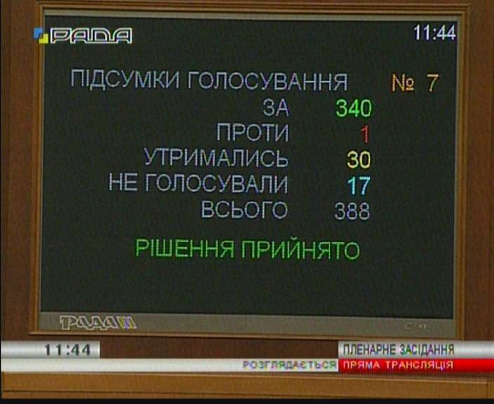 По итогам голосования за назначение Василия Грицака, кандидатура которого была представлена Президентом, проголосовало 340 народных депутатов.