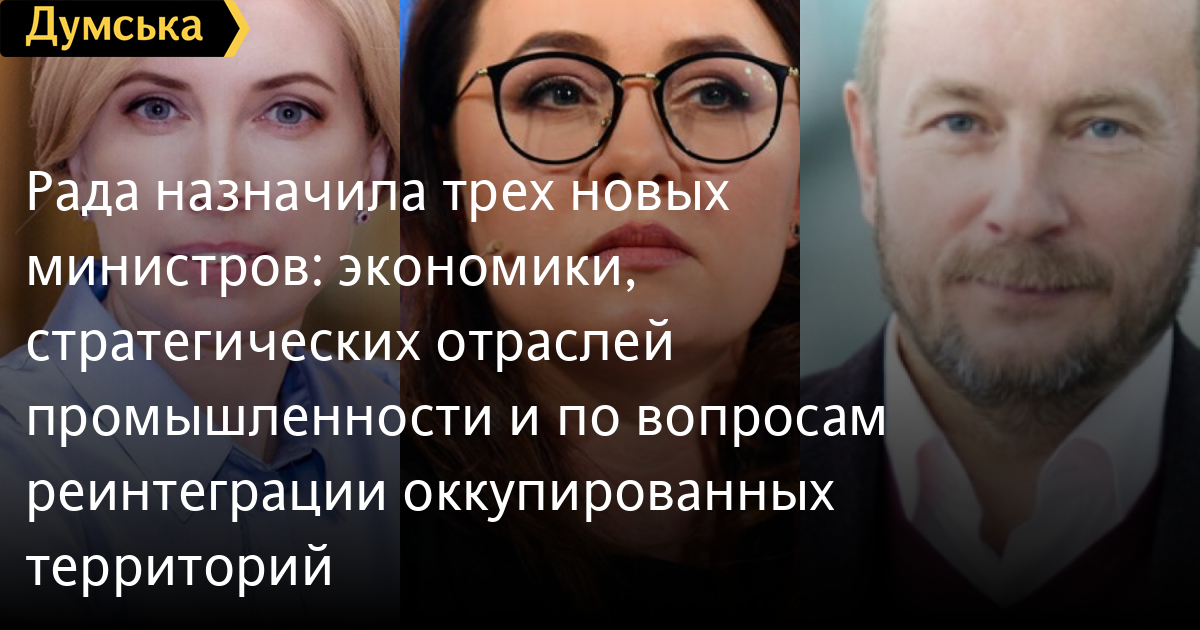 Рада назначила трех новых министров: экономики, стратегических отраслей промышленности и по вопросам реинтеграции оккупированных территорийЭкс-нардеп от партии «Слуга народа» Ирина Верещук возглавила министерство по вопросам реинтеграции временно оккупированных территорий Украины. За ее назначение проголосовали 260 народных депутатов. Отметим, ранее это министерство возглавлял Алексей Резников, которого сегодня назначили министром обороны Украины. Также парламентарии поддержали назначение на должность первого вице-премьер-министра Украины — министра экономики Юлию Свириденко, котороая ранее занимала должность заместителя руководителя Офиса президента Украины. За ее назначение свои голоса отдали 256 народных депутатов. Кроме того, депутаты определились с руководителем министерства по стратегическим отраслям промышленности. Им стал Павел Рябинкин, который ранее возглавлял Государственную таможенную службу Украины. Поддержали назначение Рябикина на должность министра 237 нардепов. СМЕРТЬ РОССИЙСКИМ ОККУПАНТАМ! Заметили ошибку? Выделяйте слова с ошибкой и нажимайте control-enter |