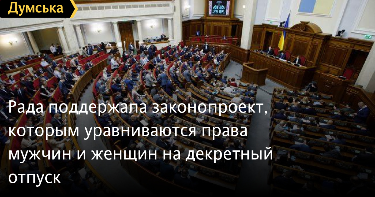 Рада поддержала законопроект, которым уравниваются права мужчин и женщин на декретный отпускНа сегодняшнем заседании Верховной Рады депутаты поддержали проект Закона №3695 о внесении изменений в некоторые законодательные акты относительно обеспечения равных возможностей матери и отца по уходу за ребенком. Перед голосованием депутат Марина Бардина отметила, что этим законопроектом предлагается обеспечить равные возможности матери и отца по уходу за ребенком и устранить законодательные пробелы, которые ограничивают права человека на отпуск по уходу за ребенком. Законом предусматривается, что отец может брать дополнительный отпуск до двух недель сразу после рождения ребенка, даются равные возможности брать отпуск по уходу за ребенком до 3 лет для отца и матери – с выплатой за эти периоды пособия в соответствии с законодательством. Если ребенок нуждается в домашнем уходе, матери или отцу ребенка в обязательном порядке предоставляется отпуск без сохранения заработной платы; продолжительность такого отпуска определяется в медицинском заключении. По результатам голосования законопроект 301 голосом «за» принят за основу. СМЕРТЬ РОССИЙСКИМ ОККУПАНТАМ! Заметили ошибку? Выделяйте слова с ошибкой и нажимайте control-enter |