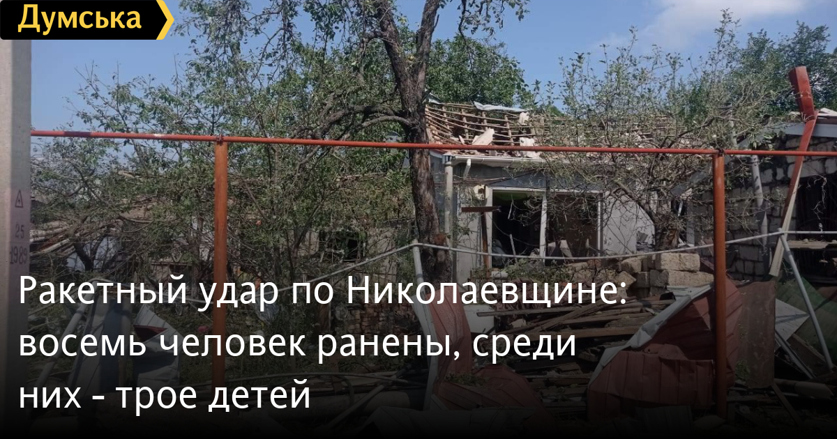 Ракетний удар по Миколаївщині: вісім людей поранено, серед них - троє дітейВісім людей, серед яких троє дітей, отримали поранення в результаті ворожого удару по Вознесенську Миколаївської області. Ракета влучила у житлову п'ятиповерхівку, повідомила голова Миколаївської облради Ганна Замазєєва. «На фото – наслідки влучання по будинку, де немає і ніколи не було навіть в околицях військових об’єктів. Наші лікарі з обласної дитячої лікарні виїхали на місце», — написала Замазєєва. Двох постраждалих в результаті обстрілу дітей оперують на місці – у Вознесенську. Третю дитину з серйозними пораненнями везуть для надання допомоги в обласний центр, додала вона. СМЕРТЬ РОСІЙСЬКИМ ОКУПАНТАМ! Помітили помилку? Виділяйте слова з помилкою та натискайте control-enter |