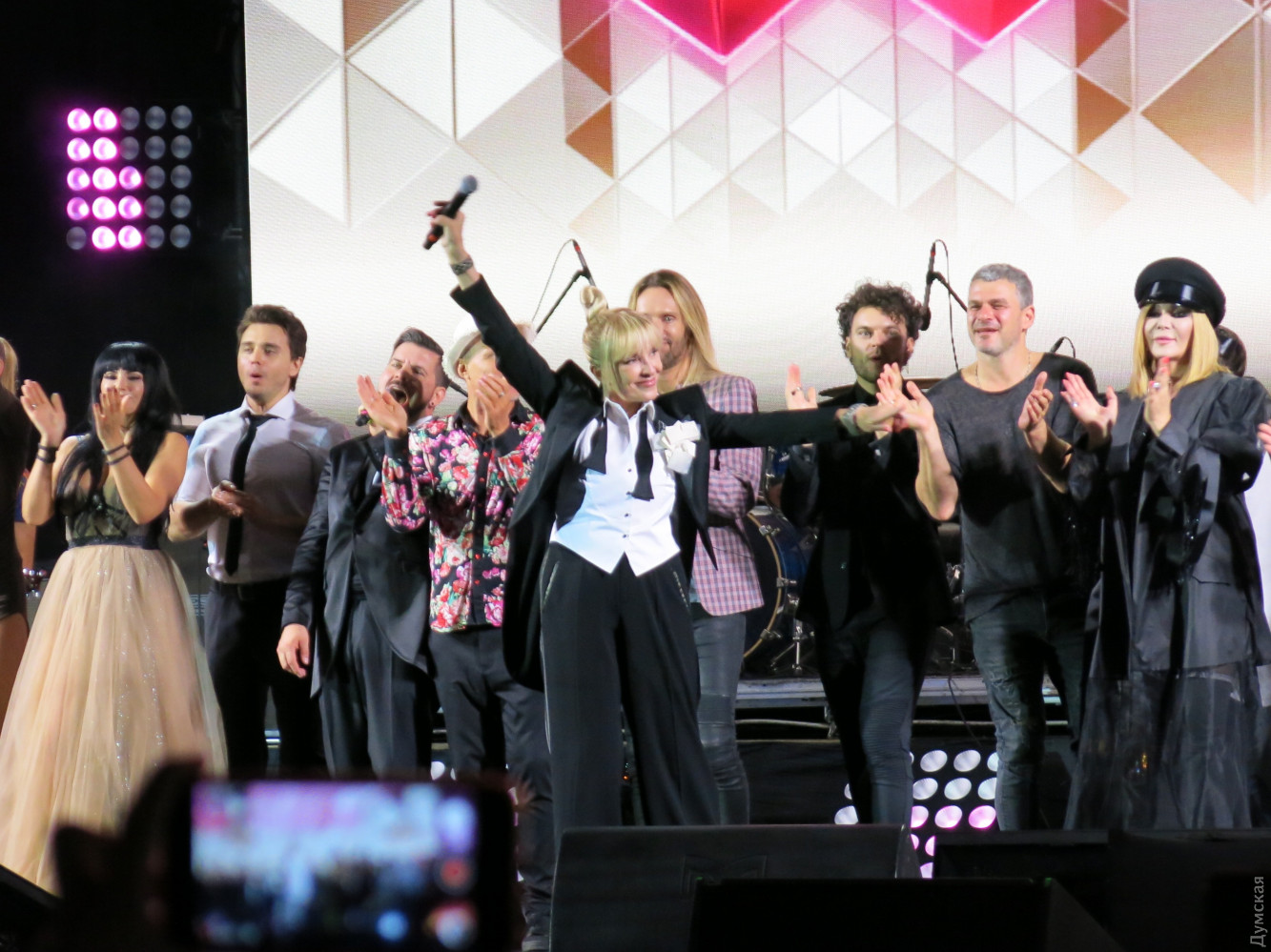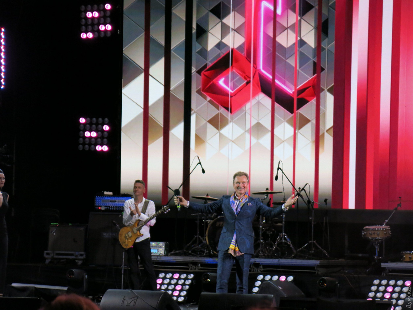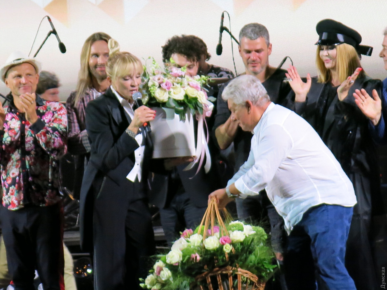 Рандеву с Лаймой: Кикабидзе спел за Одессу, Малинин зажигал как юнец, а Билык разговаривала с овощамиВчера в Одессе отгремел первый день фестиваля Лаймы Вайкуле «Рандеву», который впервые проходит в нашем городе. Гостями на празднике обворожительной латвийки стали украинские, грузинские, молдавские и российские артисты. Масштаб мероприятия оценил корреспондент «Думской». Локацией для проведения своего концерта Лайма Вайкуле выбрала Летний театр Морвокзала. В прошлом году певица уже выходила на эту сцену и загадала желание провести здесь свой фестиваль. Мечта, как видите, сбылась. Теперь фестиваль имеет намерение получить одесскую прописку и ставит цели по привлечению большего количества звезд в следующем году. А пока сказать, что на фестивале пошел настоящий звездный дождь — сложно, ведь наряду с действительно известными и даже легендарными исполнителями мелькали начинающие артисты. Зрители, которые плохо изучили программу концерта, были немного удивлены, так как надеялись попасть на рандеву непосредственно с Лаймой, а не с десятком других исполнителей. Впрочем, вечер все равно получился насыщенным и впечатляющим. Как и полагается, фестиваль открыла хозяйка. Лайма вышла на сцену в шикарном белом платье и спела песню «Рандеву». Певица еще дважды появлялась перед публикой в компании с шоу-балетом Freedom и оба раза в стильных брючных костюмах. Вместо фан-зоны возле сцены оборудовали VIP-места — столики с угощениями. Так, мы заметили главного одесского «джентельмена» Олега Филимонова и его коллегу из «Масок» Бориса Барского с супругами. За отдельным столиком сидел знаменитый грузин, актер и певец Вахтанг Кикабидзе. 81-летний артист поднялся на сцену и сразу же сорвал овации зрителей. В скромном прикиде — кепке, синих джинсах и ветровке Вахтанг Константинович спел песню из своего репертуара «Свидание с Одессой». Повеселил народ Томас Нэвергрин. (Издалека можно было подумать, что на сцену вышел вовсе не он, а Олег Винник – всему виной длинные волосы и трехдневная небритость). Исполнив два из трех своих знаменитых хитов, датский певец поблагодарил публику фразой «Дякую, аж пидскакую». После небольшого перерыва, в котором ведущие разыграли путевку в Барселону, на сцену поднялся харизматичный «Квазимодо» украинской сцены Арсен Мирзоян. Еще до концерта Вайкуле отметила, что очень хотела бы услышать певца вживую, и не разочаровалась. Ведущие не отпускали артиста со сцены и все-таки уговорили его исполнить короткую юмористическую зарисовку — если кто не знает, популярность певца началась с участия в шоу «Рассмеши комика». За ним заставила публику встрепенуться украинская Мадонна Ирина Билык. Певица появилась перед зрителями в эксцентричном наряде в стиле садо-мазо с высокими ботфортами и кепке нью-бой. После выступления Билык рассказала, что приготовила сюрприз Лайме – модную авторскую шляпку, и прямо со сцены призналась ей в любви. Певица долго отказывалась покидать подмостки театра, сказав, что сатирическую песню как Мирзоян не споет, а вот стих расскажет. Как оказалось, певица сочиняет лирическую поэзию. «Я приготовила ужин, но никому он не нужен. Скучает плов и котлета, и свечка, полная света. И огурец с помидором кричат с тарелки мне хором – «Зачем готовила праздник? Ну, отдохнула б хоть разик!». Не буду я спорить с салатом