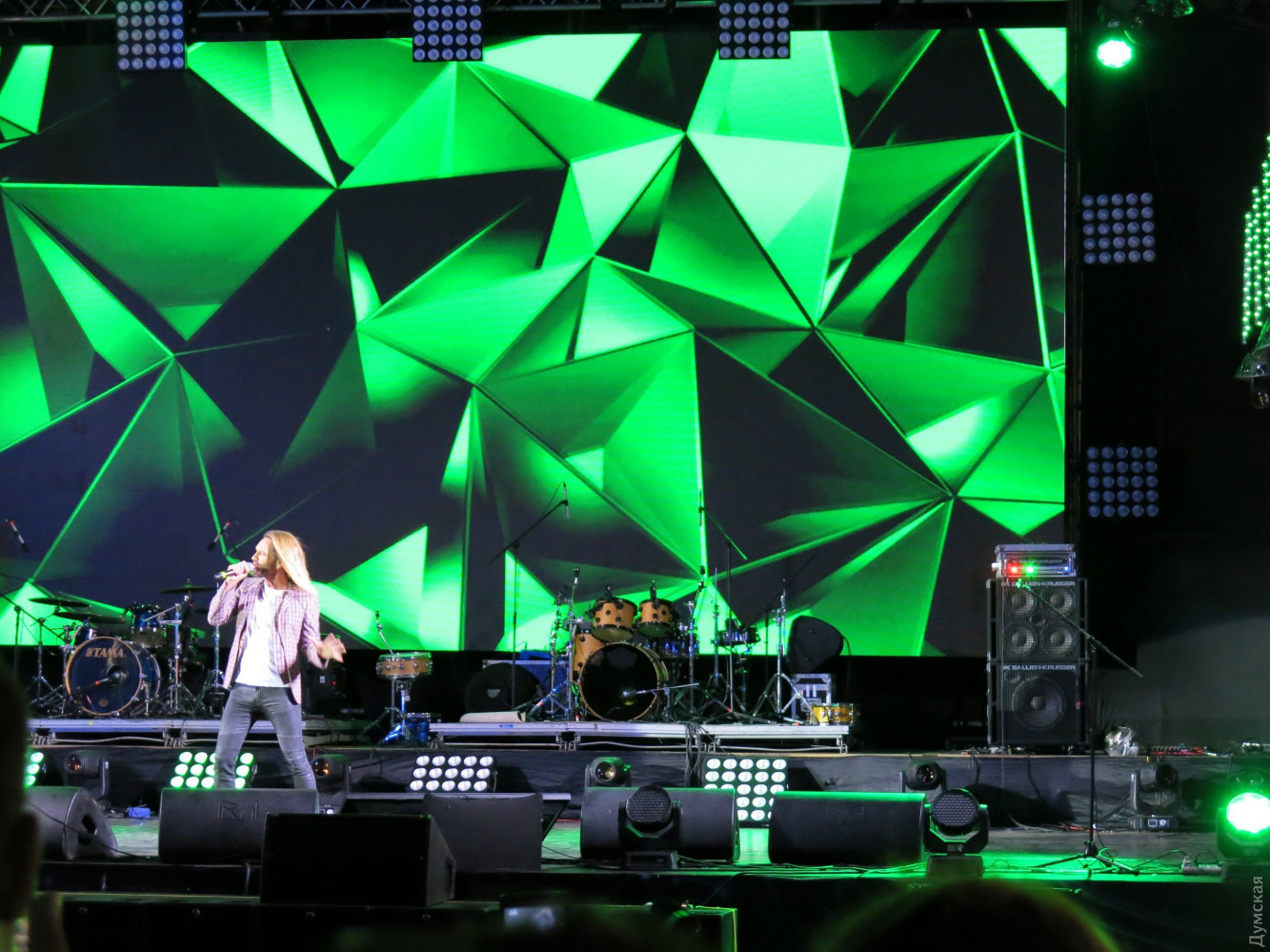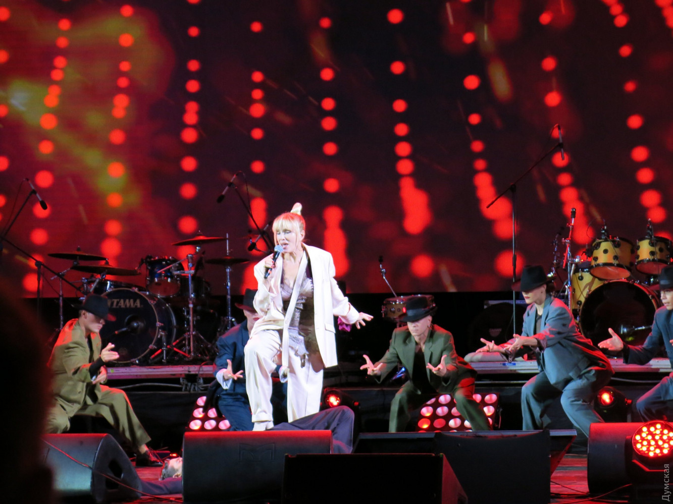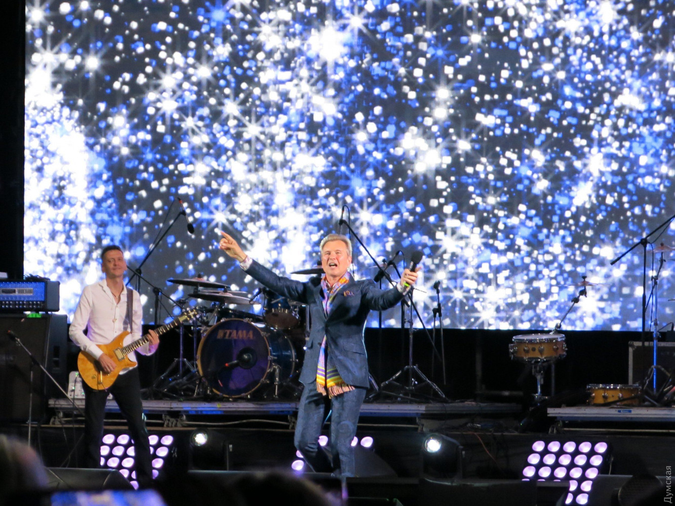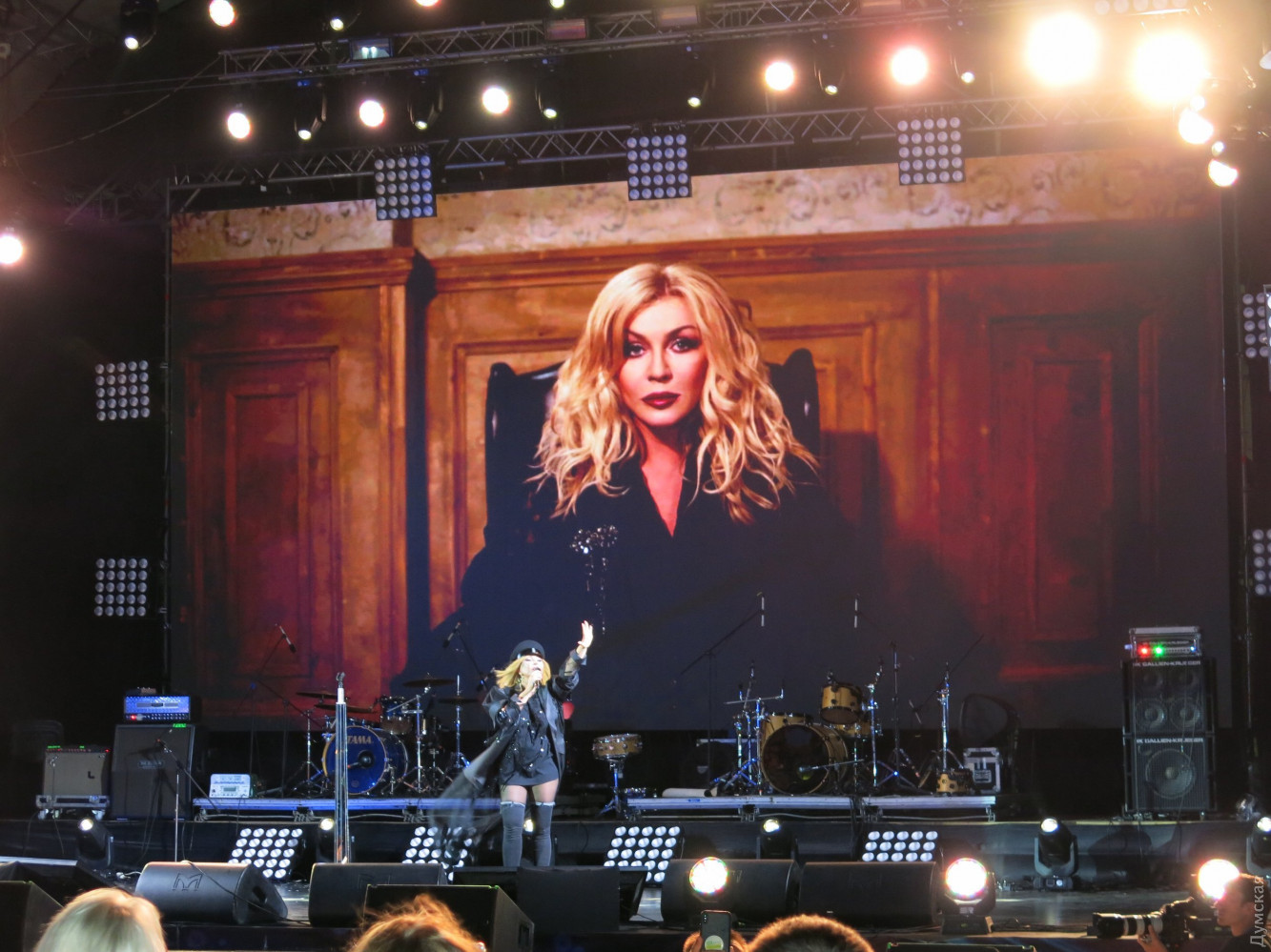 Рандеву с Лаймой: Кикабидзе спел за Одессу, Малинин зажигал как юнец, а Билык разговаривала с овощамиВчера в Одессе отгремел первый день фестиваля Лаймы Вайкуле «Рандеву», который впервые проходит в нашем городе. Гостями на празднике обворожительной латвийки стали украинские, грузинские, молдавские и российские артисты. Масштаб мероприятия оценил корреспондент «Думской». Локацией для проведения своего концерта Лайма Вайкуле выбрала Летний театр Морвокзала. В прошлом году певица уже выходила на эту сцену и загадала желание провести здесь свой фестиваль. Мечта, как видите, сбылась. Теперь фестиваль имеет намерение получить одесскую прописку и ставит цели по привлечению большего количества звезд в следующем году. А пока сказать, что на фестивале пошел настоящий звездный дождь — сложно, ведь наряду с действительно известными и даже легендарными исполнителями мелькали начинающие артисты. Зрители, которые плохо изучили программу концерта, были немного удивлены, так как надеялись попасть на рандеву непосредственно с Лаймой, а не с десятком других исполнителей. Впрочем, вечер все равно получился насыщенным и впечатляющим. Как и полагается, фестиваль открыла хозяйка. Лайма вышла на сцену в шикарном белом платье и спела песню «Рандеву». Певица еще дважды появлялась перед публикой в компании с шоу-балетом Freedom и оба раза в стильных брючных костюмах. Вместо фан-зоны возле сцены оборудовали VIP-места — столики с угощениями. Так, мы заметили главного одесского «джентельмена» Олега Филимонова и его коллегу из «Масок» Бориса Барского с супругами. За отдельным столиком сидел знаменитый грузин, актер и певец Вахтанг Кикабидзе. 81-летний артист поднялся на сцену и сразу же сорвал овации зрителей. В скромном прикиде — кепке, синих джинсах и ветровке Вахтанг Константинович спел песню из своего репертуара «Свидание с Одессой». Повеселил народ Томас Нэвергрин. (Издалека можно было подумать, что на сцену вышел вовсе не он, а Олег Винник – всему виной длинные волосы и трехдневная небритость). Исполнив два из трех своих знаменитых хитов, датский певец поблагодарил публику фразой «Дякую, аж пидскакую». После небольшого перерыва, в котором ведущие разыграли путевку в Барселону, на сцену поднялся харизматичный «Квазимодо» украинской сцены Арсен Мирзоян. Еще до концерта Вайкуле отметила, что очень хотела бы услышать певца вживую, и не разочаровалась. Ведущие не отпускали артиста со сцены и все-таки уговорили его исполнить короткую юмористическую зарисовку — если кто не знает, популярность певца началась с участия в шоу «Рассмеши комика». За ним заставила публику встрепенуться украинская Мадонна Ирина Билык. Певица появилась перед зрителями в эксцентричном наряде в стиле садо-мазо с высокими ботфортами и кепке нью-бой. После выступления Билык рассказала, что приготовила сюрприз Лайме – модную авторскую шляпку, и прямо со сцены призналась ей в любви. Певица долго отказывалась покидать подмостки театра, сказав, что сатирическую песню как Мирзоян не споет, а вот стих расскажет. Как оказалось, певица сочиняет лирическую поэзию. «Я приготовила ужин, но никому он не нужен. Скучает плов и котлета, и свечка, полная света. И огурец с помидором кричат с тарелки мне хором – «Зачем готовила праздник? Ну, отдохнула б хоть разик!». Не буду я спорить с салатом