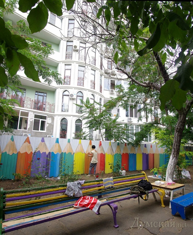 Чудо-забор Одесская художница украсила детский садик, в который хочет отдать сынишкуНеобычным образом решила помочь будущему детскому садику своего сынишки одесская художница Анастасия Кирилина. Придя устраивать трехлетнего Серафима в дошкольное учреждение (ясли-сад №37 в Воронцовском переулке), она уткнулась в проблему, крайне актуальную, по ее мнению, для детсадовцев, — в довольно-таки уродливый забор. Стометровая ограда из профнастила отделяет дошкольное учреждение от постоянно перестраиваемого жилкомплекса «Шахнаме». Художница подумала, что столь унылый фон никак не способствует успешному развитию маленьких личностей, и решила заборчик «развеселить». «Увы, отдать ребенка в садик, у которого совсем нет проблем, я не могу, — рассказала Анастасия «Думской». – Поэтому я решила помочь этому. Чем могу, как говорится. Например, разукрасить забор. В конце концов, для того и нужны художники, чтобы делать мир ярче и светлее. Была бы я асфальтоукладчиком – уложила бы асфальт (надо сказать, с асфальтовым покрытием на территории садика дела совсем плохи, — Ред.)». Прошла неделя, и серый забор стал частоколом из разноцветных карандашей. В этом благородном деле Анастасии помогают ее друзья-художники и, конечно же, маленький Серафим, который, несмотря на возраст, прекрасно справляется с кистью и краской. На следующей неделе художница намерена детализировать композицию. Как именно — пока держит в секрете. Возможно, на этом этапе к одесситке присоединятся воспитанники садика — будущие друзья Серафима. СМЕРТЬ РОСІЙСЬКИМ ОКУПАНТАМ! Помітили помилку? Виділяйте слова з помилкою та натискайте control-enter |