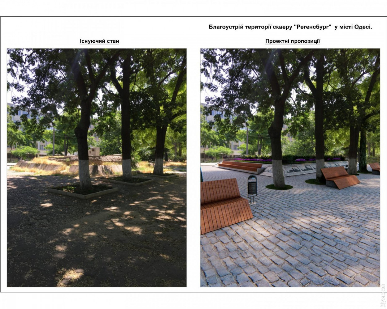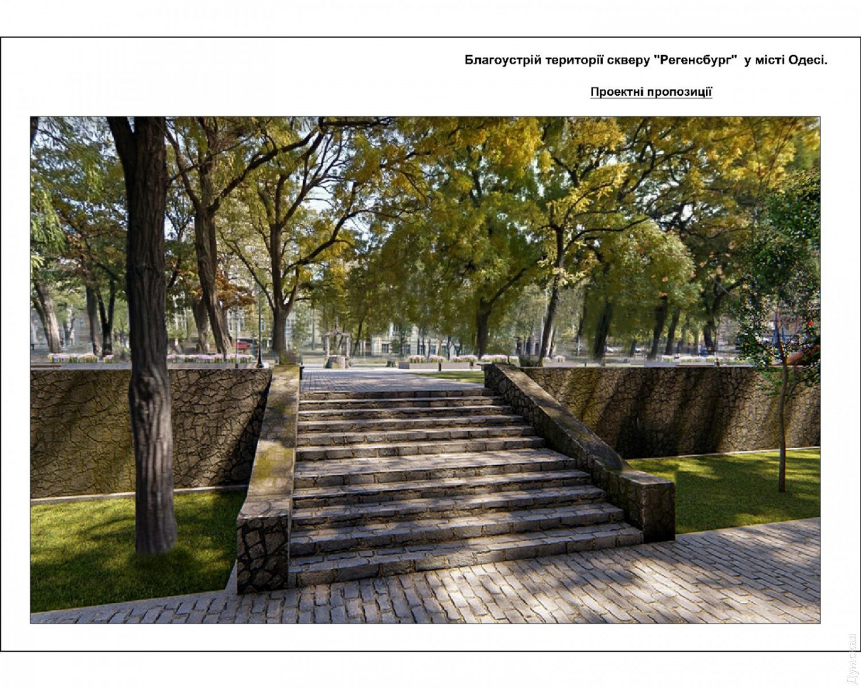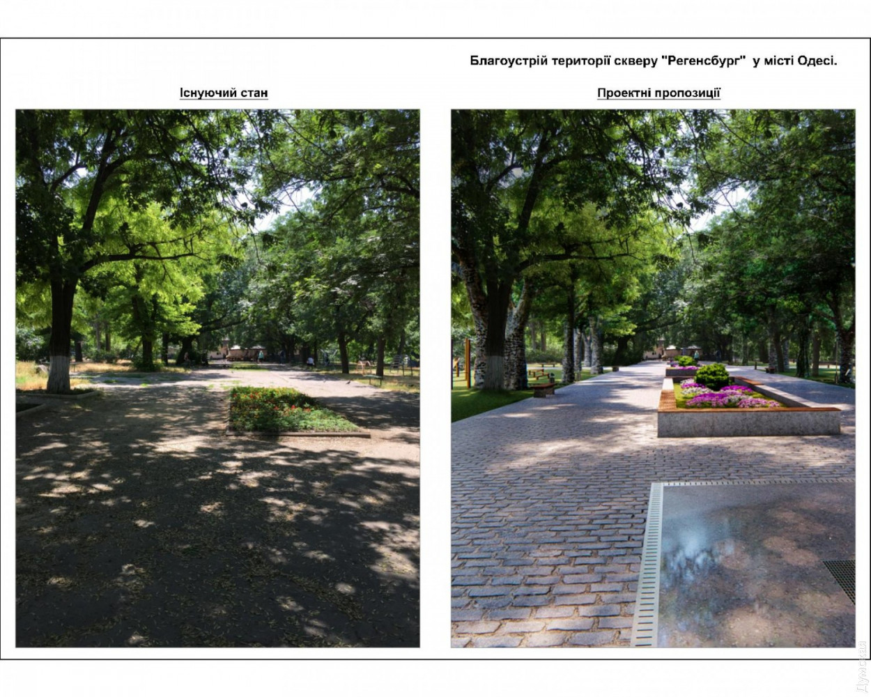 Сквер Регенсбург: в зеленой зоне на Старопортофранковской появятся фонтаны, детские и спортивные площадкиПроект благоустройства сквера Регенсбург, расположенного между Старопортофранковской, Пишоновской и Мечникова, презентовали на днях в мэрии Одессы. Разработало его КП «Одеспроект». Визуализацию продемонстрировали руководителям немецкого города-побратима, в частности мэру Гертруд Мальц-Шварцфишер. Площадь сквера составляет 0,4589 га (площадь территории благоустройства составляет 0,6883 га). На территории сквера планируют установить постаменты с символикой Регенсбурга, а на центральной аллее разместят каскад из сухих (пешеходных) фонтанов. Их подключат к сетям водо– и электроснабжения с установкой таймера включения/выключения (реле времени). Кроме того, в сквере хотят организовать зоны активного отдыха: две детские и две спортивные площадки (частично оснащенные инклюзивным инвентарем). Вокруг зеленой зоны и низких рабаток планируется выполнить обрамление из бортового камня, на центральной аллее — с низкими декоративными решетками. На зеленых газонах сквера обустроят систему автополива. В сквере необходимо отремонтировать существующие подпорные стены и парапеты, на аллеях уложить новую тротуарную плитку. Авторы проекта хотят обустроить сквер велосипедными парковками, а вдоль пешеходных аллей установить скамьи для отдыха и питьевой фонтанчик возле спортплощадки. Аллеи будут освещаться парковыми светильниками нового образца, вдоль пешеходной зоны улиц, примыкающих к территории сквера, установят турникеты. На выходах из сквера предусмотрены два дог-поста с установкой дог-боксов (емкостей для сбора экскрементов домашних животных). По всей территории сквера обязательно поставят урны для мусора и павильон общественного туалета модульного типа. Работы по благоустройству будут выполняться с сохранением существующих многолетних растений. Сквер Регенсбург будет оснащен камерами видеонаблюдения. Как сообщил первый заместитель Одесского городского головы Анатолий Орловский, сквер планируют открыть ко Дню города в 2020 году. Работы по реализации проекта начнутся в апреле будущего года. Напомним, сквер Регенсбург назвали в честь города-побратима в феврале прошлого года. Это одна из зеленых зон, оставшихся от Внешнего бульвара: так называлась в XIX веке широкая полоса между Старопортофранковской и Мечникова, которая была сплошь засажена деревьями. Своим появлением бульвар обязан второй границе зоны порто-франко. В 1820-е годы беспошлинную Одессу от остальной Российской империи отделяли две параллельные канавы, протянувшиеся от Пересыпи до Карантина. Рвы были глубиной два, а шириной три метра. Между ними находилась «серая» зона шириной в 15 саженей (почти 35 метров). Рвы должны были останавливать контрабандистов, но получалось это у них плохо. Предприимчивые одесситы использовали для переправки товаров катакомбы. В 1827 году, после упразднения второй черты порто-франко, полосу между рвами засадили деревьями и стали называть Внешним бульваром. Со временем его застроили общественными зданиями. Осталось лишь несколько зеленых островков. Расположенный в земле Бавария Регенсбург — побратим Одессы с 1990 года. Он неоднократно оказывал поддержку нашему городу. За 27 лет регенсбуржцы подарили одесситам несколько машин скорой 