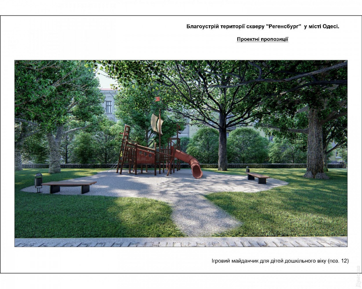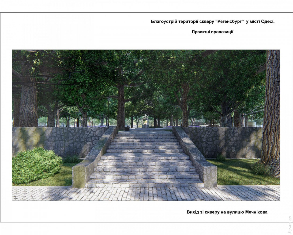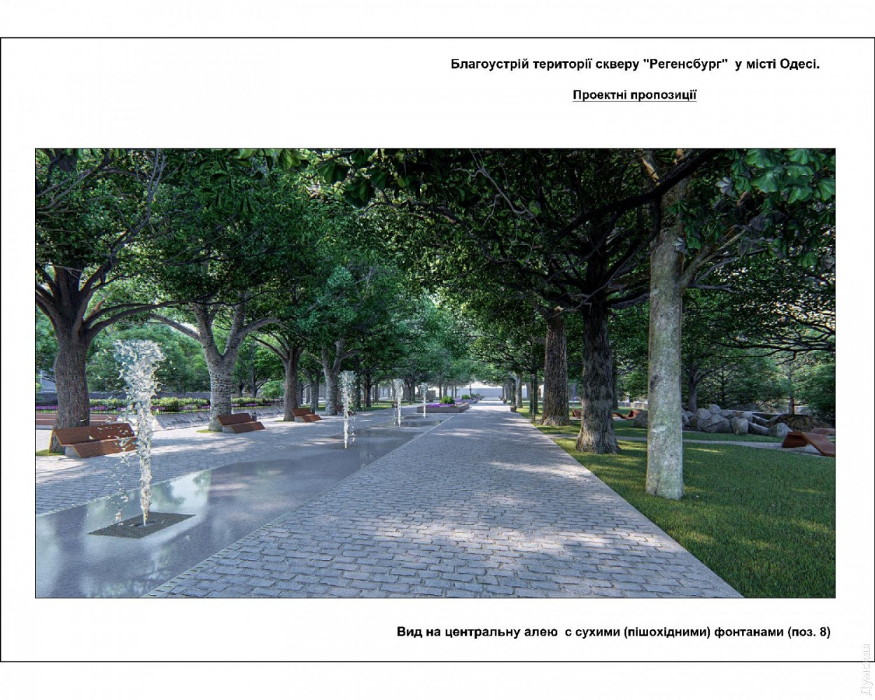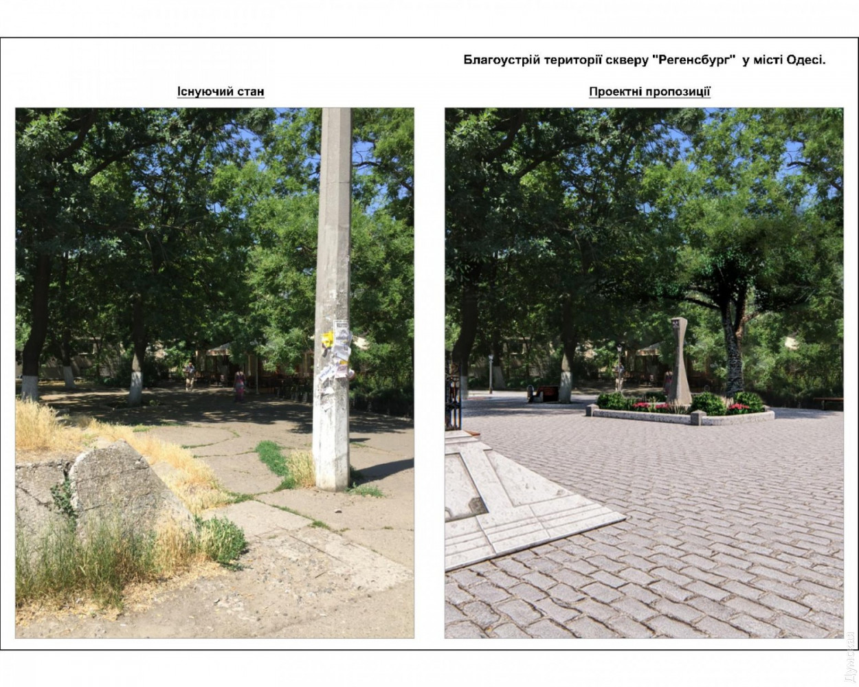 Сквер Регенсбург: в зеленой зоне на Старопортофранковской появятся фонтаны, детские и спортивные площадкиПроект благоустройства сквера Регенсбург, расположенного между Старопортофранковской, Пишоновской и Мечникова, презентовали на днях в мэрии Одессы. Разработало его КП «Одеспроект». Визуализацию продемонстрировали руководителям немецкого города-побратима, в частности мэру Гертруд Мальц-Шварцфишер. Площадь сквера составляет 0,4589 га (площадь территории благоустройства составляет 0,6883 га). На территории сквера планируют установить постаменты с символикой Регенсбурга, а на центральной аллее разместят каскад из сухих (пешеходных) фонтанов. Их подключат к сетям водо– и электроснабжения с установкой таймера включения/выключения (реле времени). Кроме того, в сквере хотят организовать зоны активного отдыха: две детские и две спортивные площадки (частично оснащенные инклюзивным инвентарем). Вокруг зеленой зоны и низких рабаток планируется выполнить обрамление из бортового камня, на центральной аллее — с низкими декоративными решетками. На зеленых газонах сквера обустроят систему автополива. В сквере необходимо отремонтировать существующие подпорные стены и парапеты, на аллеях уложить новую тротуарную плитку. Авторы проекта хотят обустроить сквер велосипедными парковками, а вдоль пешеходных аллей установить скамьи для отдыха и питьевой фонтанчик возле спортплощадки. Аллеи будут освещаться парковыми светильниками нового образца, вдоль пешеходной зоны улиц, примыкающих к территории сквера, установят турникеты. На выходах из сквера предусмотрены два дог-поста с установкой дог-боксов (емкостей для сбора экскрементов домашних животных). По всей территории сквера обязательно поставят урны для мусора и павильон общественного туалета модульного типа. Работы по благоустройству будут выполняться с сохранением существующих многолетних растений. Сквер Регенсбург будет оснащен камерами видеонаблюдения. Как сообщил первый заместитель Одесского городского головы Анатолий Орловский, сквер планируют открыть ко Дню города в 2020 году. Работы по реализации проекта начнутся в апреле будущего года. Напомним, сквер Регенсбург назвали в честь города-побратима в феврале прошлого года. Это одна из зеленых зон, оставшихся от Внешнего бульвара: так называлась в XIX веке широкая полоса между Старопортофранковской и Мечникова, которая была сплошь засажена деревьями. Своим появлением бульвар обязан второй границе зоны порто-франко. В 1820-е годы беспошлинную Одессу от остальной Российской империи отделяли две параллельные канавы, протянувшиеся от Пересыпи до Карантина. Рвы были глубиной два, а шириной три метра. Между ними находилась «серая» зона шириной в 15 саженей (почти 35 метров). Рвы должны были останавливать контрабандистов, но получалось это у них плохо. Предприимчивые одесситы использовали для переправки товаров катакомбы. В 1827 году, после упразднения второй черты порто-франко, полосу между рвами засадили деревьями и стали называть Внешним бульваром. Со временем его застроили общественными зданиями. Осталось лишь несколько зеленых островков. Расположенный в земле Бавария Регенсбург — побратим Одессы с 1990 года. Он неоднократно оказывал поддержку нашему городу. За 27 лет регенсбуржцы подарили одесситам несколько машин скорой 