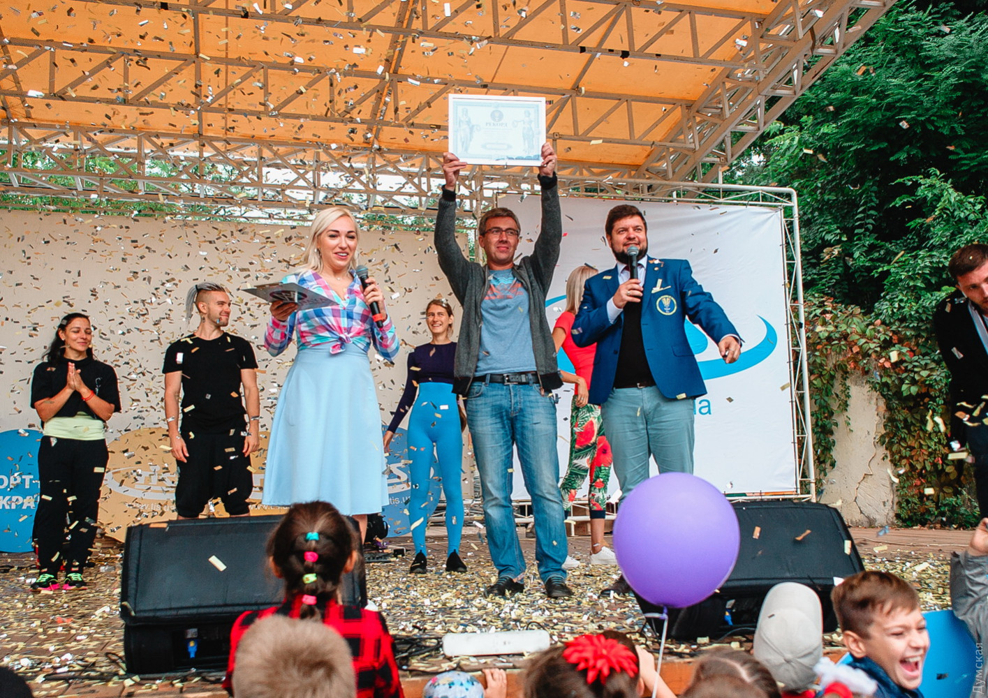 Новый рекорд Украины установили вчера в Зеленом театре — 407 детей в возрасте от 6 до 12 лет занимались йогой. Мастер – класс проводила сертифицированный фитнес-тренер Анна Лобач вместе с коллегами. Организаторам понадобились определенные усилия, чтобы выстроить ребят на занятие. «Мы выбрали самые базовые упражнения, которые осилил бы каждый ребенок. Начали с позиции «приветствие солнцу», — говорит тренер. – Детки очень любят визуализировать и подражать. Улыбки малышей, которые мы увидели – тому подтверждение». В течение получаса юные йоги повторяли движения за тренерами, а представители Национального реестра рекордов Украины подвели итоги. «Детского мастер-класса по йоге Украина еще не видела. Одесса, как всегда, первая, — отметил официальный представитель реестра Дмитрий Яицкий. – Нужно отдать должное организаторам — собрать на одной локации четыре сотни малышей, а потом их посчитать — невероятно сложно». Грамоту о постановке рекорда получил каждый юный участник праздника. СМЕРТЬ РОСІЙСЬКИМ ОКУПАНТАМ! Помітили помилку? Виділяйте слова з помилкою та натискайте control-enter |