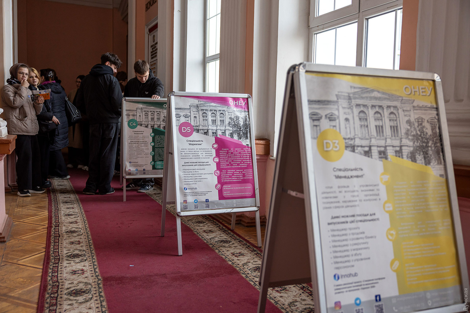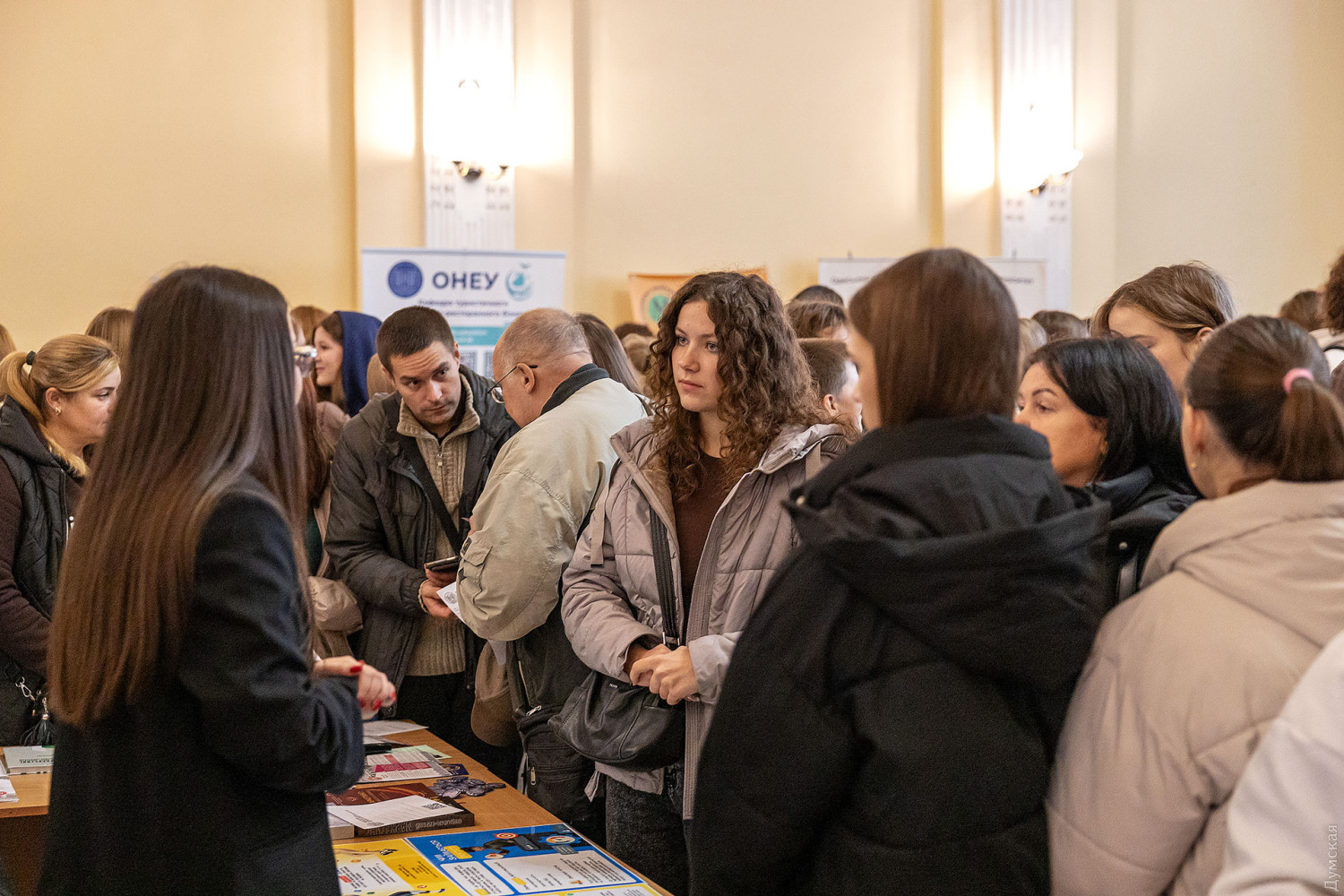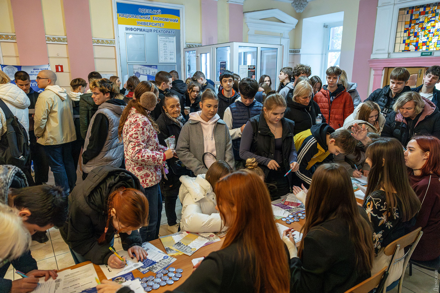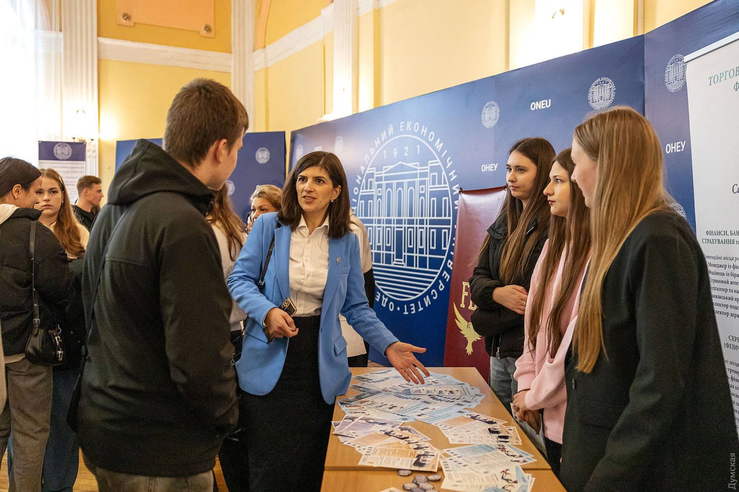 День відкритих дверей пройшов в Одеському національному економічному університеті. Головний корпус вишу, що на Преображенській, 8, зустрів абітурієнтів та їхніх батьків оновленим фасадом. Пам'ятка архітектури освіжила автентичні кольори, а всередині майбутніх студентів чекали викладачі, які представили нові освітні програми та розповіли про можливості, що відкриваються. За словами ректора ОНЕУ Анатолія Ковальова, вступна кампанія цього року була дуже успішною. «Ми отримали понад 1500 нових студентів на всі форми навчання, на всі рівні, — розповів Ковальов. — Особливо успішним було вступ до бакалаврату. Є такі освітні програми, за якими ми набрали рекордну для України кількість студентів. Наприклад, 306 осіб поповнили наші ряди саме за маркетингом. Більше тільки у Львівській політехніці та Київському національному університеті». Керівник вузу додав, що одним із проривів року став прийом на нову освітню програму «Торгівля та торговий менеджмент». «Я вважаю, що Одеса – це місто, яке завжди було лідером у просуванні товарів, торгівлі, логістиці, – зазначив ректор. – Тому ми сподіваємося, що буде великий попит на фахівців – випускників нашого університету саме за цією спеціальністю. Торгівля – один із пріоритетних напрямків розвитку економіки нашого регіону». Анатолій Ковальов також підкреслив важливість міжнародного співробітництва. «Зараз наш проректор з наукової роботи та міжнародної діяльності перебуває в Китаї, вивчає можливості організації спільної діяльності в навчанні та проведенні заходів з інноваційної діяльності, — розповів Ковальов. — Продовжуємо плідно працювати з Німеччиною за програмою подвійних дипломів. Буквально з понеділка починається навчання за участю американського професора з університету Сан-Дієго Марка Сігала. Він уже третій рік співпрацює з нами». Декан факультету економіки та управління підприємством Олег Бабій зазначив, що виш не стоїть на місці і постійно розвивається. Цього року в університеті відкрили нові спеціальності: «Фінансова та страхова математика», а також «Культурологія». «За деякими спеціальностями наш приріст склав 40% порівняно з минулим роком. Так, є стандартні напрямки, які набирають максимум — це маркетинг, міжнародна логістика, менеджмент. Але все тече, все змінюється. Тому ми намагаємося розвивати набір студентів у різних напрямках», — повідомив Бабій. Більш детально відкриття нової спеціальності прокоментувала завідувачка кафедри статистики та математичних методів в економіці Юлія Ольвінська. «Цього року ми відкрили нову освітню програму — «Фінансова та страхова математика», — каже Ольвінська. — Ми готуємо фахівців, які вміють використовувати математичні методи для аналізу фінансових ризиків, потоків, ринків. Це дуже затребувано на ринку праці. Ми випускаємо не чистих математиків, а математиків-економістів. Програма прикладна, держава її підтримує, більше бюджетних місць і нижчий прохідний бал». Новими напрямками підготовки поділилася завідувачка кафедри маркетингу та міжнародної логістики Марія Саенсус. «Ми завжди були лідерами в нашому південному регіоні, в масштабах країни перед нами тільки Львівська політехніка і університет Шевченка, — зазначила викладачка. — Наш успіх пов'язаний з тим, що ми використовуємо ефект синергії і поєднуємо два, здавало