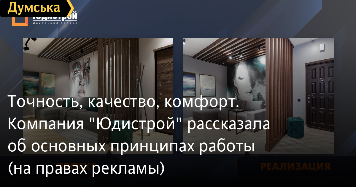 Точность, качество, комфорт. Компания «Юдистрой» рассказала об основных принципах работы (на правах рекламы)Ремонт – это ответственный и волнительный этап между покупкой квартиры и новосельем. Доверяя его лучшим мастерам своего дела, вы обеспечиваете себе гарантию того, что процесс пройдет легко и приятно. Лидер на рынке строительства и ремонта – компания «Юдистрой» — разрабатывает индивидуальные дизайн-проекты интерьера, выполняет ремонтные работы любой сложности, проектирует и строит частные дома. За 15 лет работы компания отремонтировала более 2 700 квартир. При этом 52% клиентов пришли в «Юдистрой» по рекомендациям друзей и близких. Сдано под ключ свыше 160 000 м2 отделочных работ. «Юдистрой» осчастливили более 3 000 семей. Ведь согласно статистике Минюста, проблемы с жильем, куда входит и ремонт – основная причина разводов в Украине! С 2013 года компания построила больше 100 авторских домов. Более 22 800 м2 пространства сдано клиентам. Выполнено более 400 архитектурных проектов домов. Спроектировано свыше 79 000 м2 площадей. Основные принципы «Юдистрой»: -Точность. Вы знаете точную стоимость и сроки завершения работ с самого начала сотрудничества и оплачиваете работы поэтапно. Результат полностью отвечает дизайн-проекту, который «Юдистрой» в рамках временной акции дарит при подписании договора. - Качество. Компания использует только проверенные и безопасные материалы, что подтверждено сертификатами. При этом занимается подбором, закупкой и доставкой материалов на ваш объект. - Комфорт. На весь проект за вами закрепляется персональный проектный менеджер. Он слышит ваши желания, отвечает на вопросы, управляет командой ремонта. Для полного соответствия стилю на всех этапах, от выбора материалов до завершения работ, выполняется авторский контроль дизайнером. Вам не обязательно присутствовать в Одессе – ход работ можно легко отследить в личном онлайн-кабинете из любой точки мира. Большая часть идей по ремонту ограничена бюджетом. Но в отличие от косметической части, на базовой части ремонта экономить нельзя. Переделывать, ремонтировать раньше срока или мучиться из-за недостатков будет намного дороже. Поэтому в «Юдистрой» разработали услугу WHITE BOX. WHITE BOX – основа любого ремонта. Это трансформация квартиры из состояния «Бетонные стены от строителей» или «Спасите нас от этого ужаса» в состояние «Качественная белая коробка с ровными стенами и потолком». Дальнейшие косметические работы вы можете реализовать самостоятельно или продолжить сотрудничество с «Юдистрой». Узнать больше о «Юдистрой», акциях и программе лояльности можно на сайте или по телефону +38 (050) 390 70 70. СМЕРТЬ РОССИЙСКИМ ОККУПАНТАМ! Заметили ошибку? Выделяйте слова с ошибкой и нажимайте control-enter |