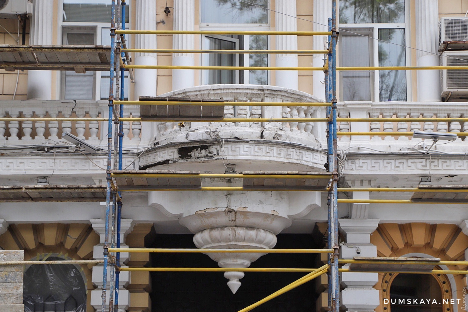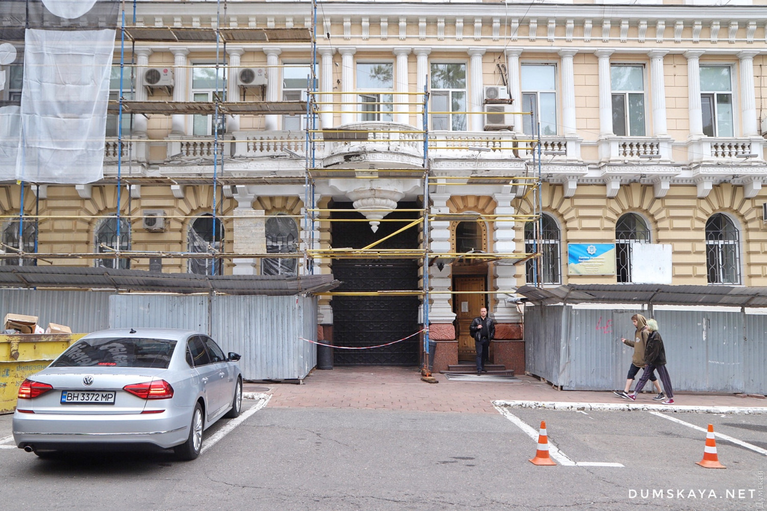 Ремонт двух памятников архитектуры, которые занимает Главное управление Национальной полиции в Одесской области, стартовал на Еврейской улице. Фасады зданий обносят забором и устанавливают строительные леса, передает корреспондент «Думской».