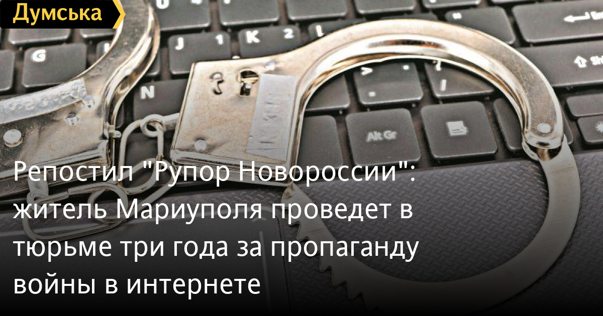 Репостил «Рупор Новороссии»: житель Мариуполя проведет в тюрьме три года за пропаганду войны в интернетеК трем годам лишения свободы приговорил Приморский райсуд Мариуполя 51-летнего местного жителя за пропаганду войны и посягательство на территориальную целостность Украины. Как сообщает пресс-служба Донецкой областной прокуратуры, в период с ноября 2018 года по июнь 2020 года злоумышленник репостил и размещал на собственной странице в «Одноклассниках» информацию ресурса «Рупор Новороссии». Эти факты были доказаны в суде. «Мужчина копировал и таким образом распространял контент с призывами к военному конфликту и совершению умышленных действий с целью изменения границ территории и государственной границы Украины», — сообщают в прокуратуре. СМЕРТЬ РОССИЙСКИМ ОККУПАНТАМ! Заметили ошибку? Выделяйте слова с ошибкой и нажимайте control-enter |