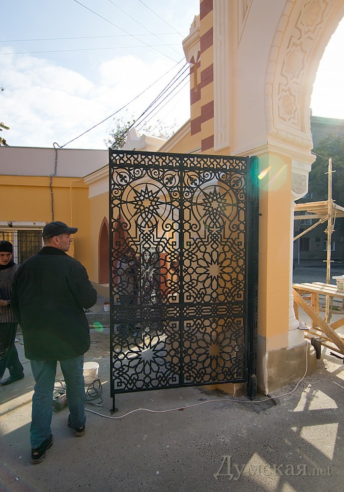 Спонсоры реставрации Мавританской арки на Французском бульваре таки согласились восстановить памятник архитектуры в первозданном виде. Напомним, ранее «Думская» сообщала, что инвестор работ (ООО «Одесская канатная дорога») отказывается возвращать один из красивейших элементов архитектурного шедевра — узорчатые чугунные ворота, которые сняли много лет назад, чтобы они не мешали проезду автотранспорта. Ворота хранились на складе фирмы. После нашей публикации бизнесмены, очевидно, пересмотрели свое решение. В настоящее время идет монтаж ворот. Одна створка уже на месте. СМЕРТЬ РОСІЙСЬКИМ ОКУПАНТАМ! Помітили помилку? Виділяйте слова з помилкою та натискайте control-enter |