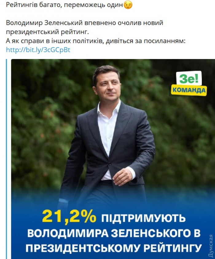 Рейтинг Зеленского сегодня не менее 35%.Все эти «публикации» -ложь и фальсификация-на дураков.Их не мало, но умных-на много больше.У Зеленского сегодня НЕТ конкурентов-сколько бы шеколада не раздали лохам.