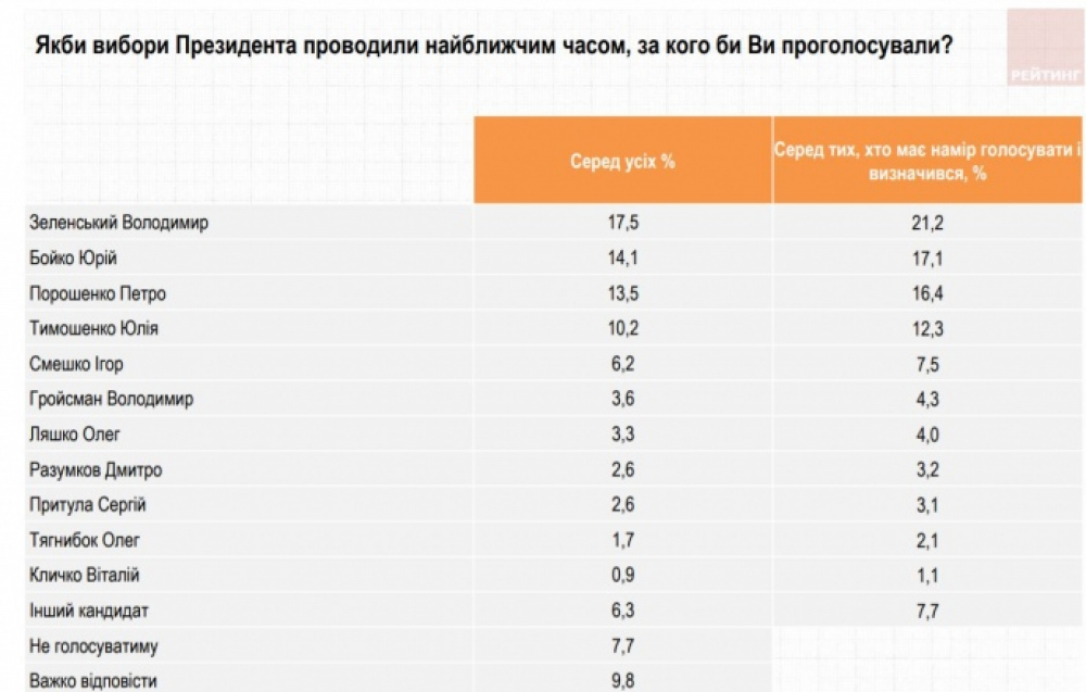 Отметим, в начале января рейтинг Зеленского был выше и составлял, согласно опросу этой же группы, 26,2% тех, кто намерен голосовать и определился с выбором. За Юрия Бойко проголосовали бы 16,6%, Петра Порошенко — 13,3%, Юлию Тимошенко — 10,5%. В Зе-команде отреагировали на снижение популярности Зеленского, опубликовав оптимистический пост в телеграм-канале: «Рейтингов много, победитель один».