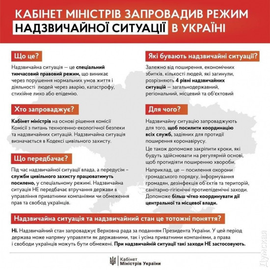 «Чрезвычайная ситуация не ограничивает конституционные права граждан, но консолидирует усилия в борьбе с угрозой», — отметил премьер-министр Денис Шмыгаль.