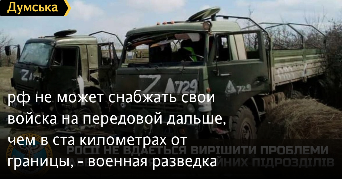 рф не может снабжать свои войска на передовой дальше, чем в ста километрах от границы, — военная разведкаРоссийские командиры частей материально-технического обеспечения запрещают водителям эвакуировать раненых и подвозить продукты и топливо на передовую, боясь потерять технику. По информации Главного управления разведки Минобороны Украины, более 3 тысяч тыловых автомобилей армии рф продолжают храниться в пунктах постоянной дислокации. «С начала военного вторжения в Украину, войска материально-технического обеспечения России уже задействовали более 45 процентов имеющейся автомобильной техники. Однако оказалось, что вся логистическая схема россиян не может обеспечить потребности значительного количества войск на расстоянии свыше 100 км от собственной границы», — говорится в сообщении военной разведки. Отметим, что Силы обороны уже уничтожили более 2200 автомобилей и автоцистерн оккупантов. СМЕРТЬ РОСІЙСЬКИМ ОКУПАНТАМ! Помітили помилку? Виділяйте слова з помилкою та натискайте control-enter |