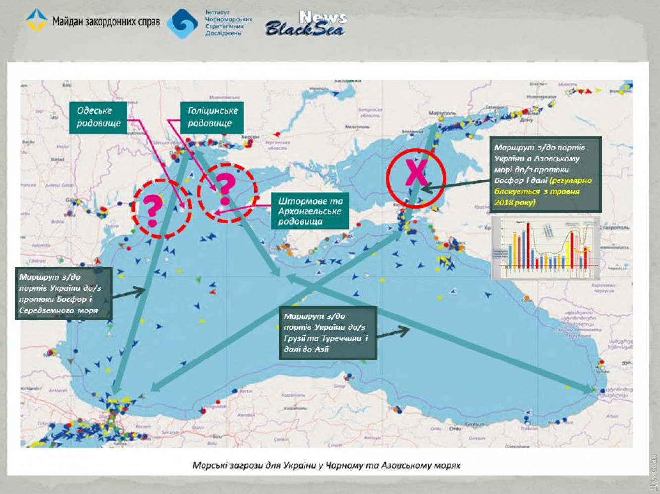 «Мы сделали прогноз, что в 2020 году перекрытия (под разными предлогами) движения судов в Керченском проливе будут продолжаться. РФ будет использовать их для обеспечения секретности военных перевозок в Крым. Мы почти уверены в том, что «Азовский кризис» был «тренировкой». В 2020 году мы ждем дальнейших действий РФ по созданию препятствий судоходству в украинские порты не только в Азовском, но и в Черном море», — отмечает аналитик.