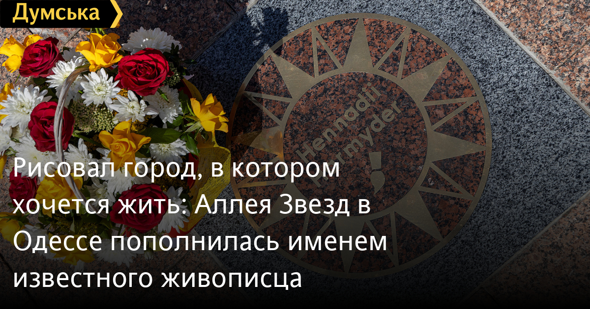 Памятную звезду в честь художника Геннадия Гармидера торжественно открыли сегодня на Аллее Звезд в Одессе. Как передает корреспондент «Думской», памятный знак живописцу стал 53-й звездой на Аллее. «Сегодня здесь собрались те, кто ценит, помнит и знает историю нашего города, — рассказал на открытии мэр Одессы Геннадий Труханов. — Мы гордимся всеми, кто прославил наш город на весь мир, сделал его таким, каким он есть. Сегодня мы открываем звезду Геннадия Гармидера. Он рисовал непросто картины, он рассказывал о нашем городе. И делал это очень красиво, душой». Памятную табличку из рук городского головы получила жена художника Светлана Крыжевская. «Геннадий очень любил Одессу, все, что он делал, он делал с любовью к городу и людям, — отметила она. — Его главным кредо было: «Я рисую город, в котором хочется жить». Эта звезда — признание его заслуг и вкладов в жизнь города». Геннадий Гармидер — выдающийся одесский художник-график. Работал в технике масляной живописи, офорта, создавал городские пейзажи, натюрморты, портреты, а также иллюстрировал более 200 книг. Его знаменитые графические серии — «Одесса начала XIX века», «Одесса и французы», «Театр и город» — стали визитной карточкой города. Открытие звезды на Аллее Звезд стало частью празднования 80-летия художника, которое проходит в этом году. СМЕРТЬ РОССИЙСКИМ ОККУПАНТАМ! Заметили ошибку? Выделяйте слова с ошибкой и нажимайте control-enter