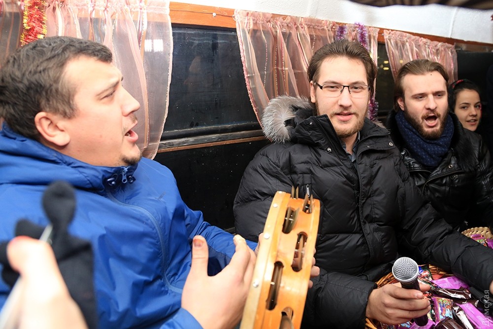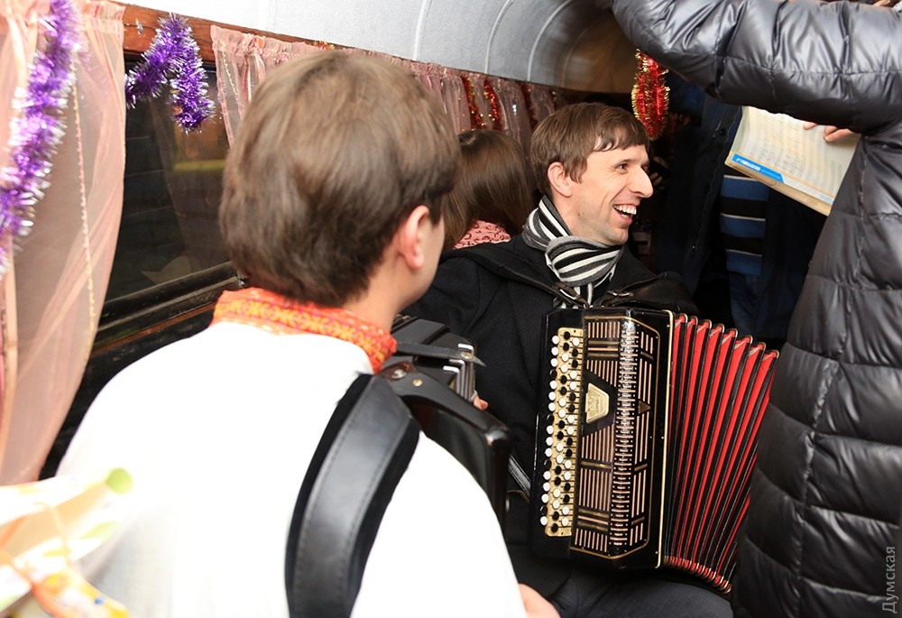 Сегодня по Одессе ездил музыкальный трамвайчик. Прямо в салоне городского транспорта расположился хор, исполнявший по ходу движения рождественские песни и колядки. Старшим вагоновожатым праздничного трамвайчика был руководитель молодежного отдела одесской епархии УПЦ отец Максим. Он назвал своих хористов ангелами, которые несут одесситам весть о Рождестве Христовом. Трамвай вместил в себя около 50 человек — было тесновато, но зато весело. К аромату ладана в салоне постоянно подмешивался запах жженой электропроводки — контакты искрили, и это придавало всему действу особый шик. На Тираспольской площади вагон сделал остановку, «ангелы» вышли и спели для удивленных горожан несколько песен, раздали подарки и отправились дальше. Автор Сергей Смоленцев СМЕРТЬ РОСІЙСЬКИМ ОКУПАНТАМ! Помітили помилку? Виділяйте слова з помилкою та натискайте control-enter |