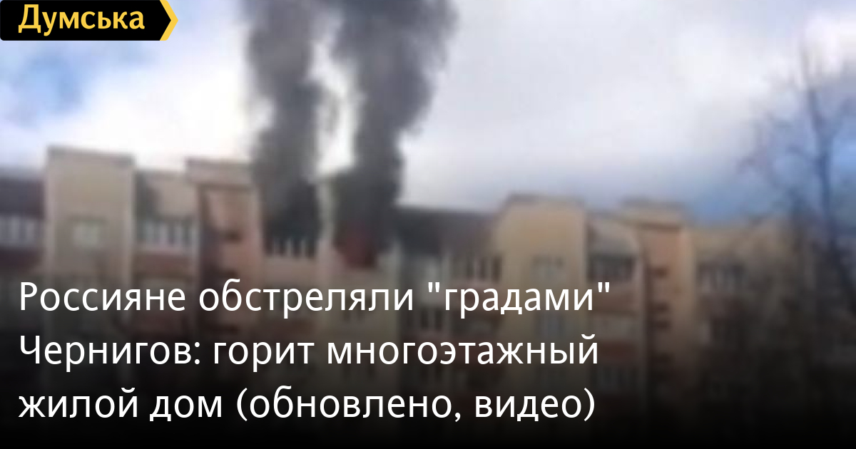 Россияне обстреляли «градами» Чернигов: горит многоэтажный жилой дом (обновлено, видео)Российские войска обстреляли Чернигов «градами». Горит один из жилых домов. Как сообщает «Суспильное», на улице Белова горит квартира на верхних этажах многоэтажки. В областной больнице выбиты окна в хирургическом корпусе, старой котельной и пищеблоке. СМЕРТЬ РОСІЙСЬКИМ ОКУПАНТАМ! Помітили помилку? Виділяйте слова з помилкою та натискайте control-enter |