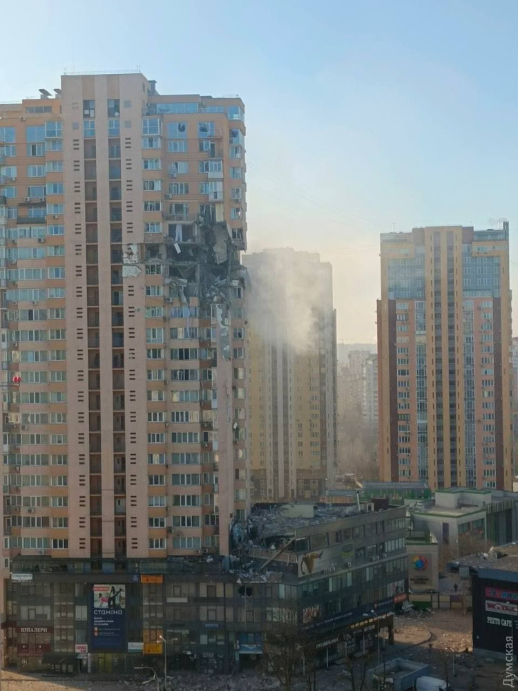 Россияне обстреляли ракетами Киев: одна попала в жилую высотку (обновлено, фото, видео)Ракетному обстрелу подверглась сегодня утром украинская столица, передает корреспондент «Думской». Одна из ракет попала в жилую многоэтажку на Соломенке. Информации о жертвах и пострадавших пока нет. ОБНОВЛЕНО В 8:52. По предварительной информации ГСЧС, жертв и пострадавших нет. Люди успели покинуть квартиры. ОБНОВЛЕНО В 09:50. По словам мэра Виталия Кличко, в доме разрушению подверглись с 17 по 21 этаж. Продолжается эвакуация людей. СМЕРТЬ РОСІЙСЬКИМ ОКУПАНТАМ! Помітили помилку? Виділяйте слова з помилкою та натискайте control-enter |