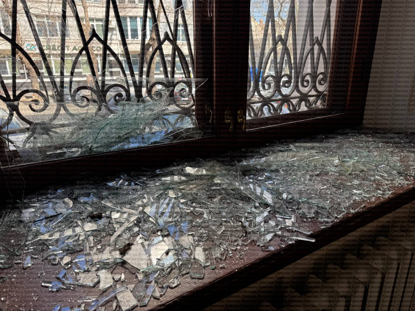 Как передает корреспондент «Думской», внутри здания не осталось ни одного целого стекла. Сильные повреждения получили витражи, а также помещения, где раздают гуманитарную помощь.