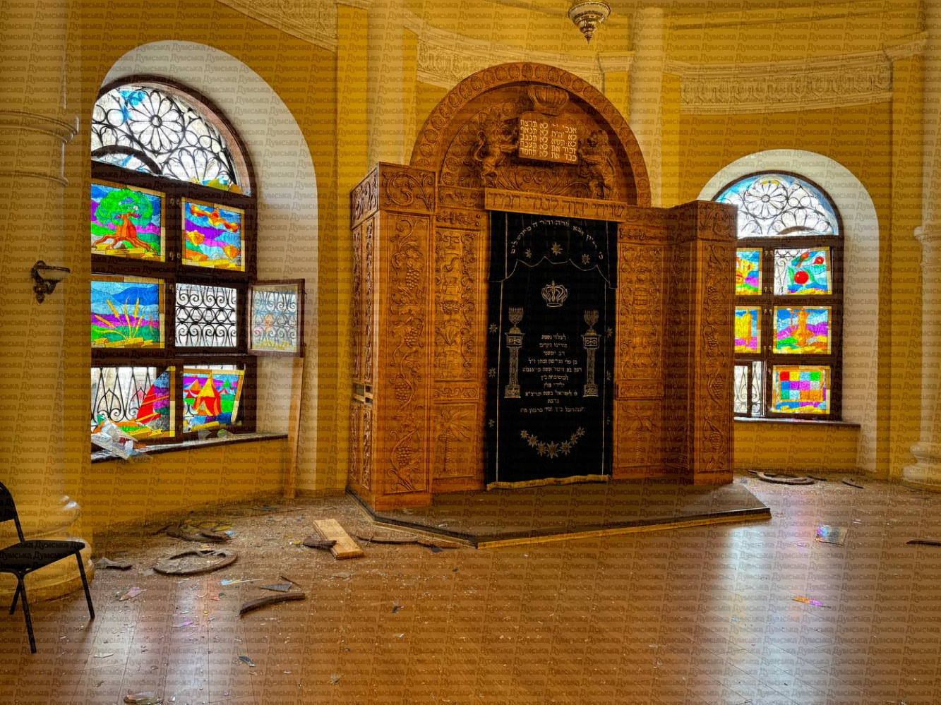Синагога серьезно пострадала после атаки внутри не осталось ни одного целого стекла.