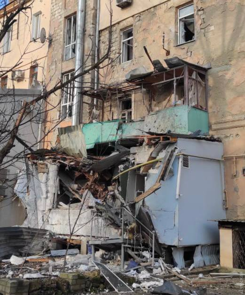 "Всего пострадали до шести человек. Их состояние не тяжёлое. Все пострадавшие получили повреждения в результате осколков. 47 тысяч семей в Одессе остались без света вследствие ночной атаки.