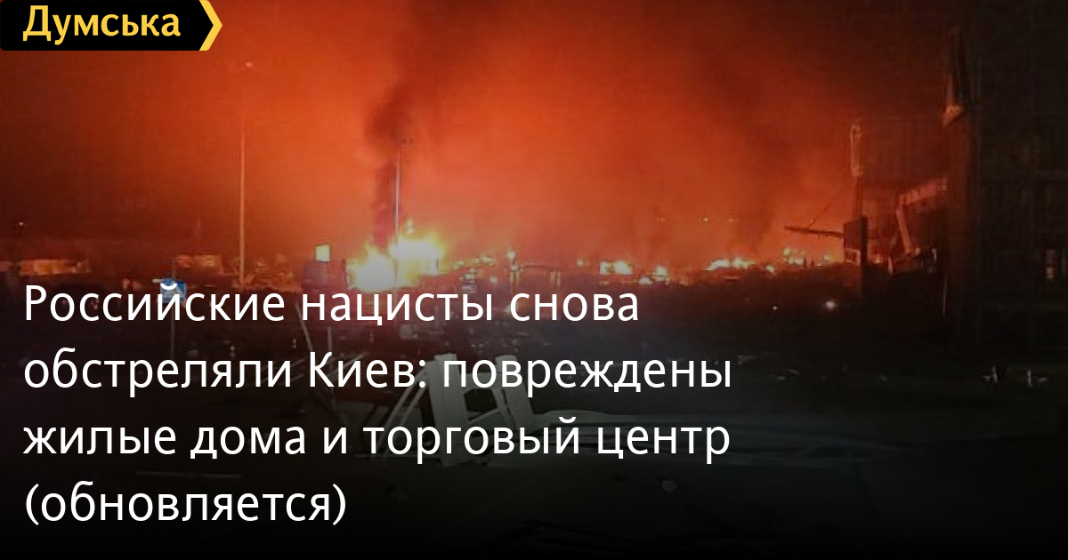 Российские нацисты снова обстреляли Киев: повреждены жилые дома и торговый центр (обновляется)Российские нацисты нанесли очередной удар по Киеву вечером 20 марта. Как сообщил мэр Киева Виталий Кличко, в столице прогремело несколько взрывов. Пострадали жилые дома и торговый центр в Подольском районе. «Спасатели, медики и полиция уже на месте», — отметил Виталий Кличко. Информация о пострадавших уточняется. ОБНОВЛЕНО В 00:05. На территории торгового центра в результате обстрела возник сильный пожар. Известно как минимум об одном погибшем. ОБНОВЛЕНО В 01:20. Из-под завалов спасли мужчину. ОБНОВЛЕНО В 04:02. В результате обстрелов погибли четыре человека и один получил травмы. СМЕРТЬ РОССИЙСКИМ ОККУПАНТАМ! Заметили ошибку? Выделяйте слова с ошибкой и нажимайте control-enter |