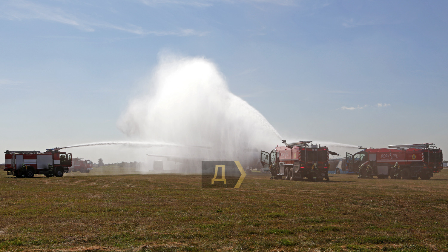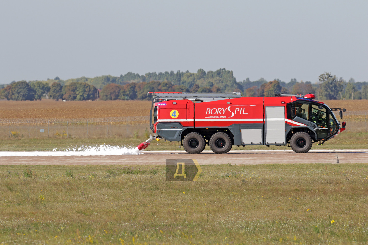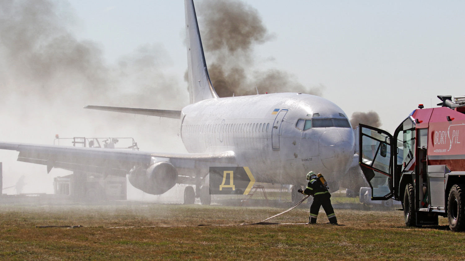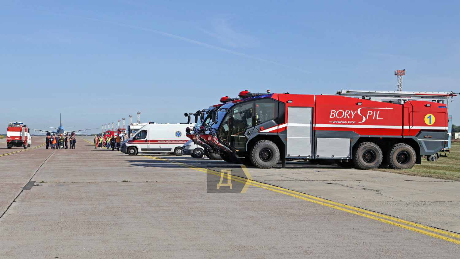 В международном аэропорту Борисполь вчера днем прошли большие учения пожарных и спасательных служб главных воздушных ворот страны. Более сотни спасателей отрабатывали действия во время возможных непредвиденных ситуаций. Корреспондент «Думской» наблюдал за учениями. Подобные показательные выступления экстренные службы аэропорта устраивают раз в два года, но в прошлом, 2020-м, из-за пандемии они не проводились, поэтому журналисты смогли увидеть первые учения с 2018 года. Смотр боевой готовности подразделений был разбит на несколько этапов. За пять часов представители спасательных служб других ведомств, журналисты и студенты киевских профильных вузов смогли увидеть спасение экипажа и пассажиров самолета, действия спасателей перед аварийной посадкой, тушение пожаров и работу медиков после спасения. Изюминкой этих учений стал показ в деле специализированных аэродромных пожарных автомобилей Panther 6X6 PA-146 австрийской компании Rosenbauer International AG. Машины были заказаны в июле 2019 года, но прибыли в аэропорт всего несколько месяцев назад. По словам начальника аварийно-спасательных служб аэропорта «Борисполь» Василия Дремлюги, с помощью этой техники самый крупный аэропорт Украины стал в полной мере соответствовать присвоенной ему категории. «Сейчас наш аэропорт соответствует всем требованиям ИКАО и присвоенной восьмой категории по обеспечению пожарной безопасности полетов. Два австрийских автомобиля «Пантера», которые мы недавно получили, обладают высочайшими техническими характеристиками», — подчеркнул главный спасатель «Борисполя». Стоимость каждой «Пантеры» — около миллиона евро. Во внутренних резервуарах машины — 12,5 тонн воды, 1500 литров пенообразователя и 225 килограммов сухого химического вещества для укладки так называемой пенной подушки. Пожарная пушка способна выдавать до девяти тысяч литров воды в минуту, а тушение пожара возможно даже на скорости более ста километров в час. Дизельный двигатель мощностью 700 лошадиных сил разгоняет «Пантеру» до 120 км в час, а разгон до 80 км/час осуществляется всего за 30 секунд, что очень важно для своевременного прибытия к месту пожара. Руководитель спасателей также отметил, что при международном нормативе прибытия на место происшествия в три минуты, его бойцы укладываются в 2,5 минуты. Во время первого этапа учений вертолет Ми-8МСБВ из состава 15-й авиационной бригады Воздушных сил Украины отрабатывал поиск и спасение экипажа самолета, совершившего аварийную посадку в заболоченной местности в пяти км от аэропорта. Спецподразделение парашютистов доставило одного пострадавшего на борт Ми-8 с помощью лебедки, остальные спасены наземными поисковыми группами и доставлены автомобилями в аэропорт. Второй этап учений был самым интересным. Согласно легенде, военно-транспортный самолет Ан-26 при взлете из аэропорта Днепр повредил шасси — на ВПП аэродрома остались куски резины. Командир воздушного судна принял решение перед посадкой в Борисполе пройти на предельно малой высоте, чтобы специалисты могли оценить масштаб повреждений. После прохода на высоте 20 метров и консультаций с летчиками было принято решение уложить на взлетку пенную подушку. Старожилы аэропорта утверждают, что такая вводная не высосана из пальца – подобный инцидент случился ровно 25 лет назад, когда пассажирский Ан-2