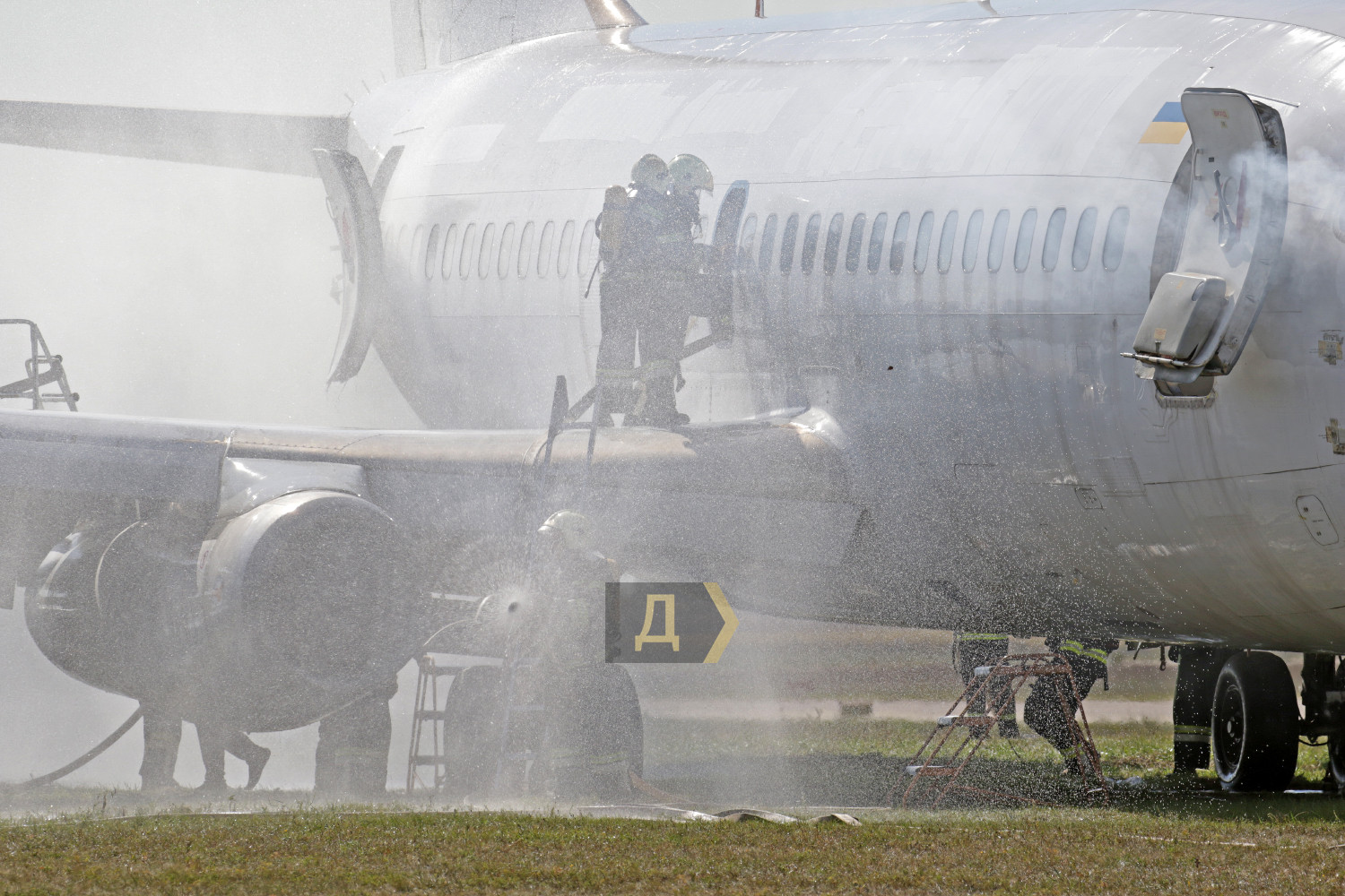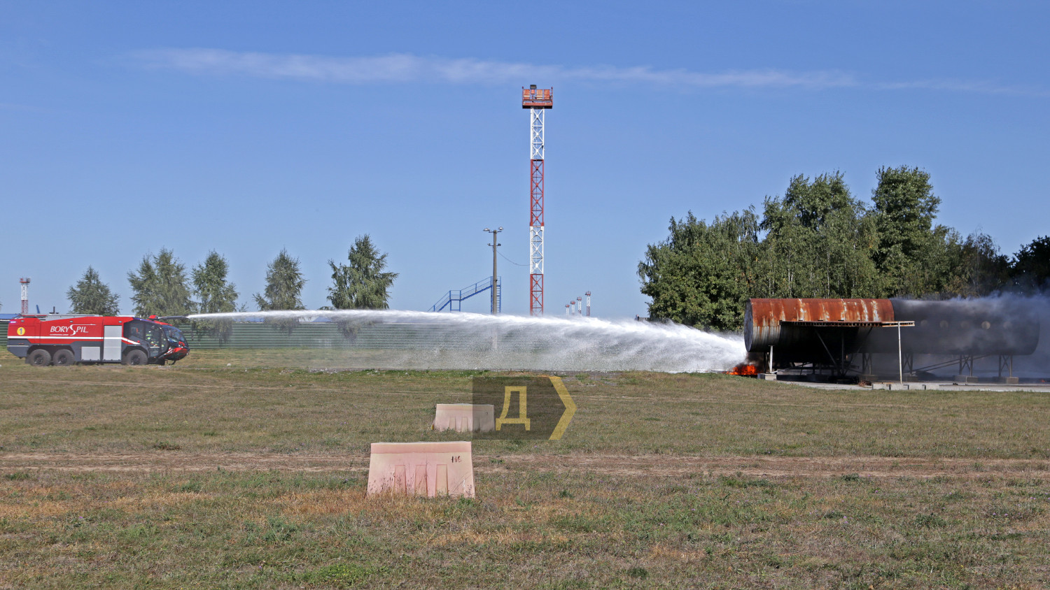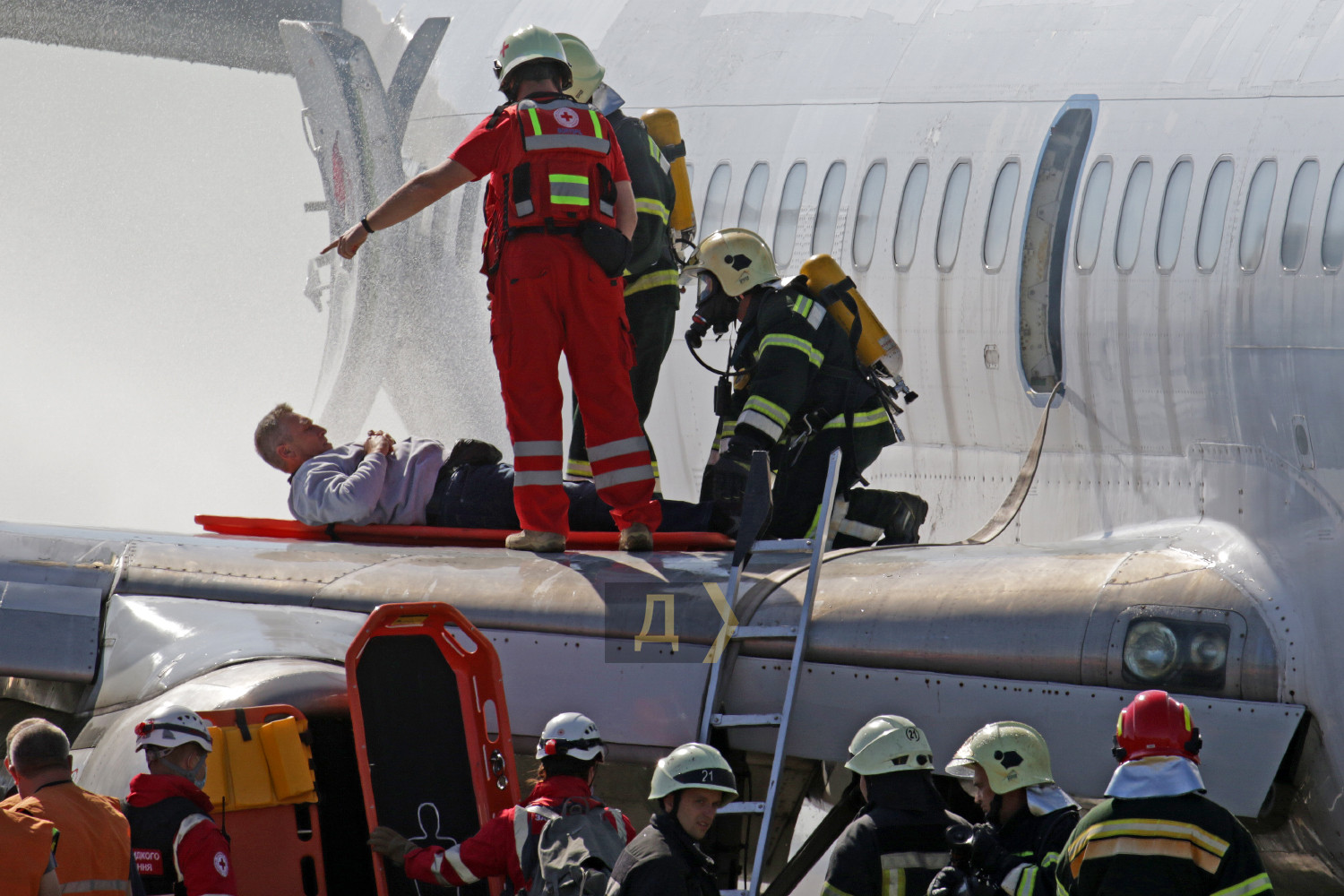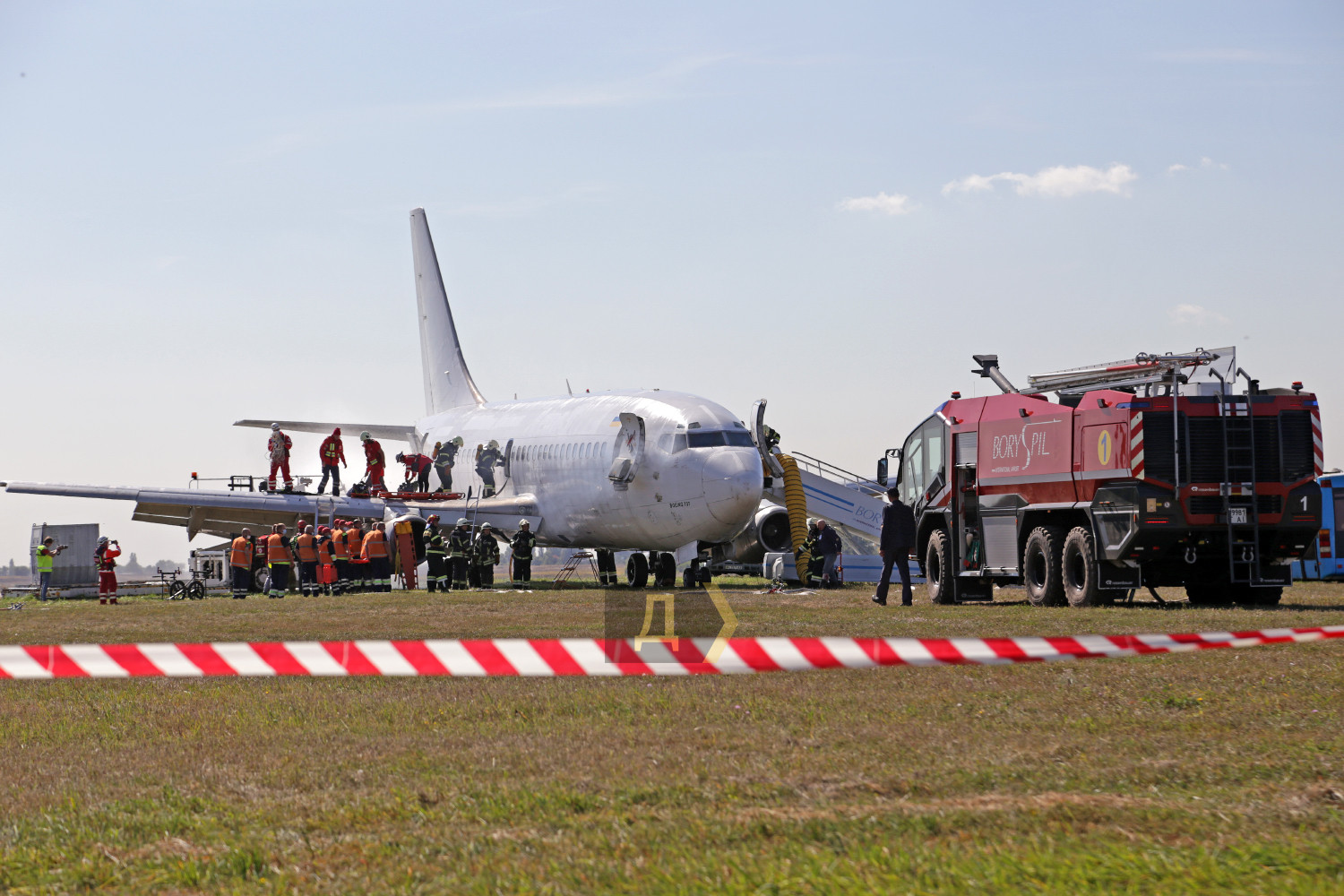 В международном аэропорту Борисполь вчера днем прошли большие учения пожарных и спасательных служб главных воздушных ворот страны. Более сотни спасателей отрабатывали действия во время возможных непредвиденных ситуаций. Корреспондент «Думской» наблюдал за учениями. Подобные показательные выступления экстренные службы аэропорта устраивают раз в два года, но в прошлом, 2020-м, из-за пандемии они не проводились, поэтому журналисты смогли увидеть первые учения с 2018 года. Смотр боевой готовности подразделений был разбит на несколько этапов. За пять часов представители спасательных служб других ведомств, журналисты и студенты киевских профильных вузов смогли увидеть спасение экипажа и пассажиров самолета, действия спасателей перед аварийной посадкой, тушение пожаров и работу медиков после спасения. Изюминкой этих учений стал показ в деле специализированных аэродромных пожарных автомобилей Panther 6X6 PA-146 австрийской компании Rosenbauer International AG. Машины были заказаны в июле 2019 года, но прибыли в аэропорт всего несколько месяцев назад. По словам начальника аварийно-спасательных служб аэропорта «Борисполь» Василия Дремлюги, с помощью этой техники самый крупный аэропорт Украины стал в полной мере соответствовать присвоенной ему категории. «Сейчас наш аэропорт соответствует всем требованиям ИКАО и присвоенной восьмой категории по обеспечению пожарной безопасности полетов. Два австрийских автомобиля «Пантера», которые мы недавно получили, обладают высочайшими техническими характеристиками», — подчеркнул главный спасатель «Борисполя». Стоимость каждой «Пантеры» — около миллиона евро. Во внутренних резервуарах машины — 12,5 тонн воды, 1500 литров пенообразователя и 225 килограммов сухого химического вещества для укладки так называемой пенной подушки. Пожарная пушка способна выдавать до девяти тысяч литров воды в минуту, а тушение пожара возможно даже на скорости более ста километров в час. Дизельный двигатель мощностью 700 лошадиных сил разгоняет «Пантеру» до 120 км в час, а разгон до 80 км/час осуществляется всего за 30 секунд, что очень важно для своевременного прибытия к месту пожара. Руководитель спасателей также отметил, что при международном нормативе прибытия на место происшествия в три минуты, его бойцы укладываются в 2,5 минуты. Во время первого этапа учений вертолет Ми-8МСБВ из состава 15-й авиационной бригады Воздушных сил Украины отрабатывал поиск и спасение экипажа самолета, совершившего аварийную посадку в заболоченной местности в пяти км от аэропорта. Спецподразделение парашютистов доставило одного пострадавшего на борт Ми-8 с помощью лебедки, остальные спасены наземными поисковыми группами и доставлены автомобилями в аэропорт. Второй этап учений был самым интересным. Согласно легенде, военно-транспортный самолет Ан-26 при взлете из аэропорта Днепр повредил шасси — на ВПП аэродрома остались куски резины. Командир воздушного судна принял решение перед посадкой в Борисполе пройти на предельно малой высоте, чтобы специалисты могли оценить масштаб повреждений. После прохода на высоте 20 метров и консультаций с летчиками было принято решение уложить на взлетку пенную подушку. Старожилы аэропорта утверждают, что такая вводная не высосана из пальца – подобный инцидент случился ровно 25 лет назад, когда пассажирский Ан-2